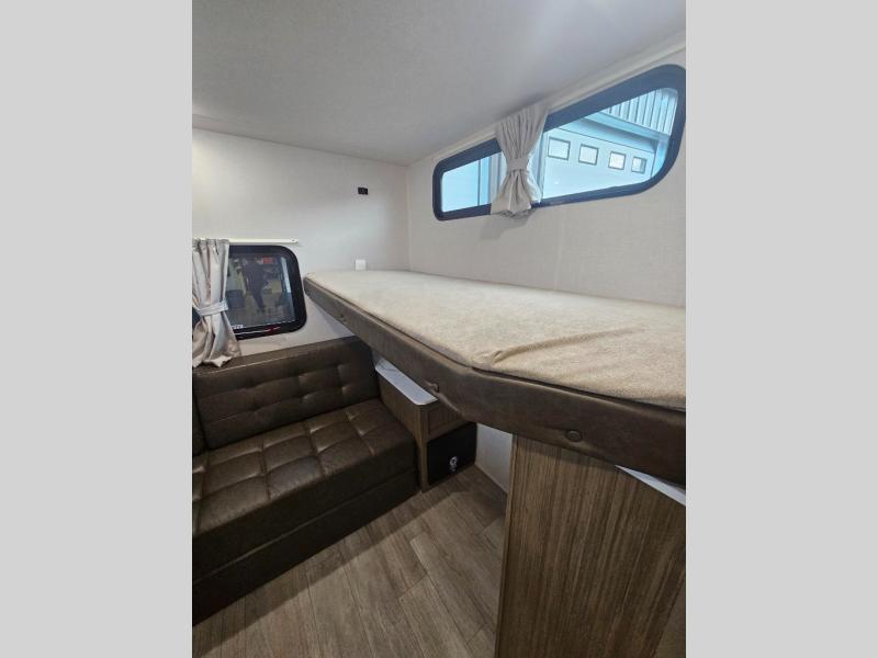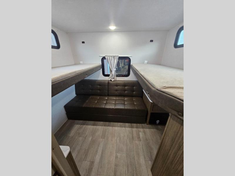 The Wildwood X-Lite travel trailers are packed with hassle-free camping amenities! There are a variety of floorplans to choose from between three different regions. The enclosed Accessibelly will help protect against the elements and debris during transport, and the exterior retro/metal redesign is sure to be eye-catching! There are stylish roller shades inside, along with updated backsplash, elegant curtain rods and curtains, plus many more interior comforts! Choose a Wildwood X-Lite travel trailer today for quality and value!