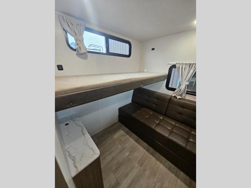 You can do so much with this Wildwood X-Lite travel trailer because it has a Versa Lounge in the main living area, and Versa-bunks plus a Versa-queen sofa in the private bunkhouse! These pieces of furniture provide you with versatility while you travel so that your trailer can best fit your lifestyle. The kitchen is completely outfitted with excellent tools to make all of your meals delicious, and the full bathroom offers you a walk-in shower for the most convenience. The exterior portion of this trailer is complete with a 16' awning and exterior speakers, and it is even more accommodating with the outdoor kitchen with a griddle.