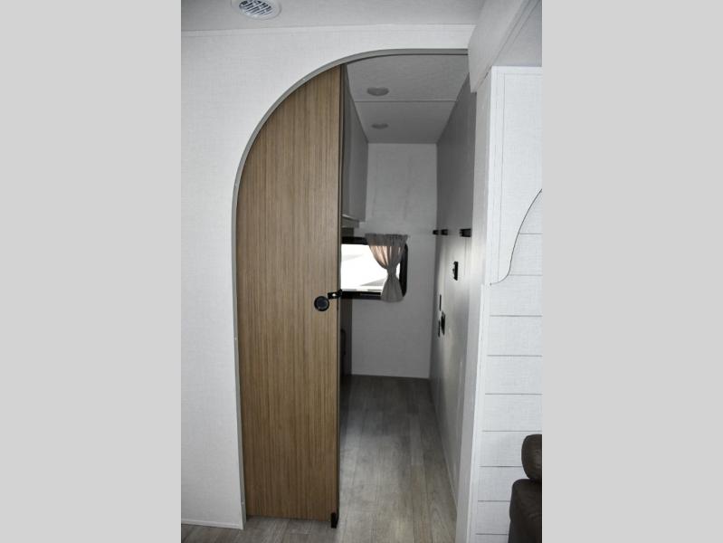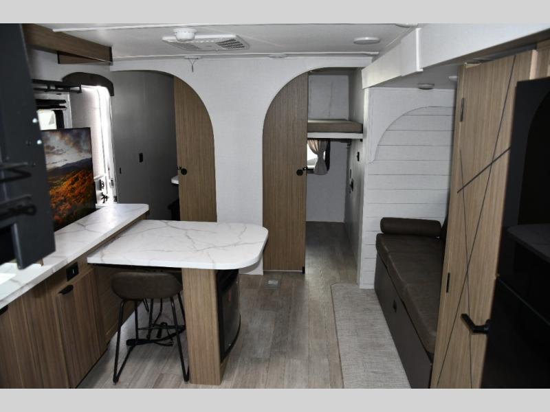 One leads directly into the main living area, and the other into the rear bunkhouse—super convenient for in-and-out foot traffic or quick bathroom breaks -