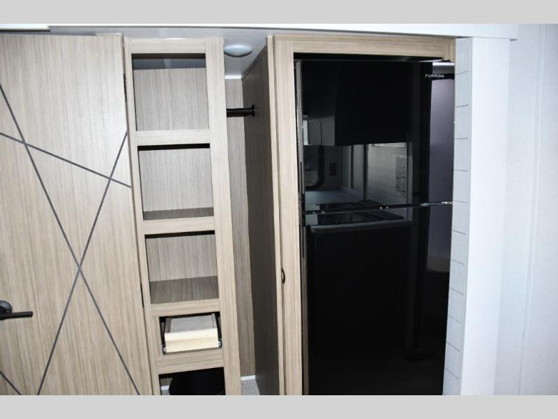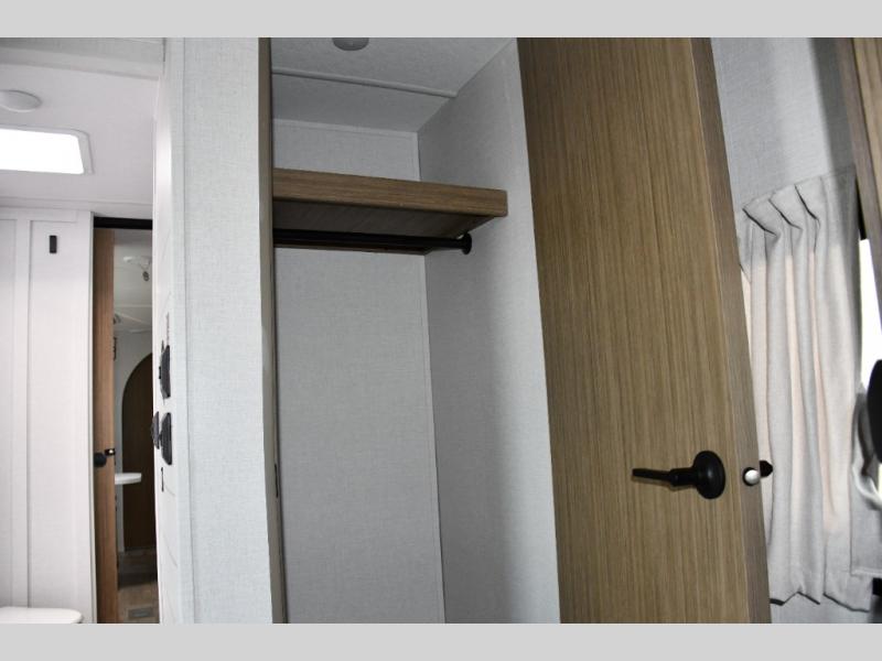 Offers a walk-around queen bed with dual wardrobes and overhead storage for your clothes, gear, or extra blankets -