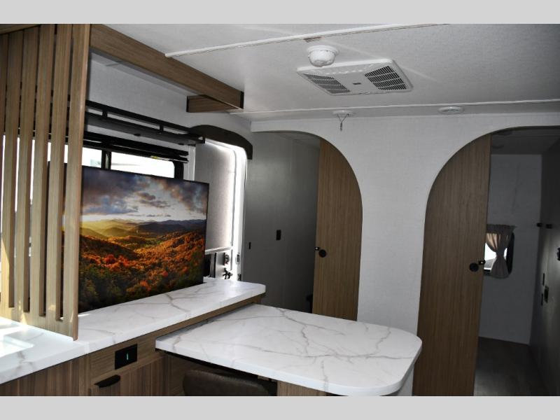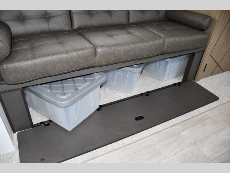 Features a U-shaped dinette and Versa Lounge jackknife sofa, ideal for dining, relaxing, or converting into extra sleeping space -
