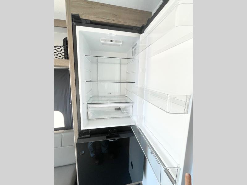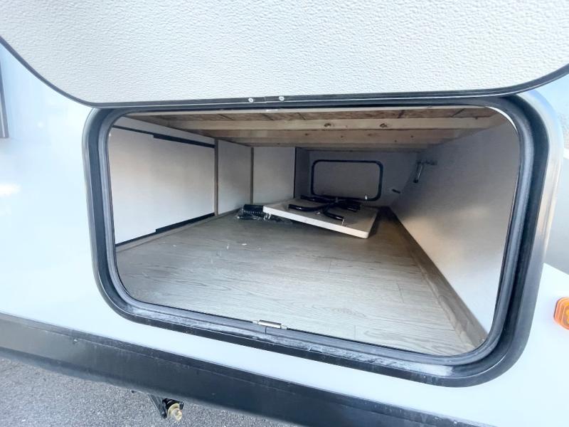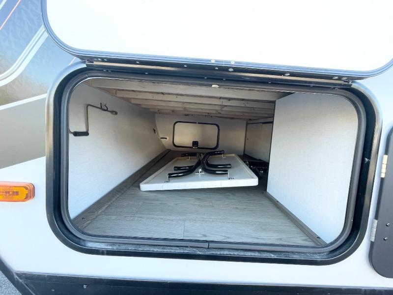 If you're looking for a more compact toy hauler, this one is perfect for three adventure-seeking campers. There is 11' 7" total garage space for your toys plus a ramp door for easy unloading. You can relax on the rollover sofa with a free-standing table once the toys are out of the way, and the 12V refrigerator is close by so you can grab a cold drink. The two burner cooktop and microwave oven will let you make meals each day, and the private bath lets you clean up without having to use the camp's facilities. After dinner, head outdoors to relax under the 12' power awning with an LED light strip!