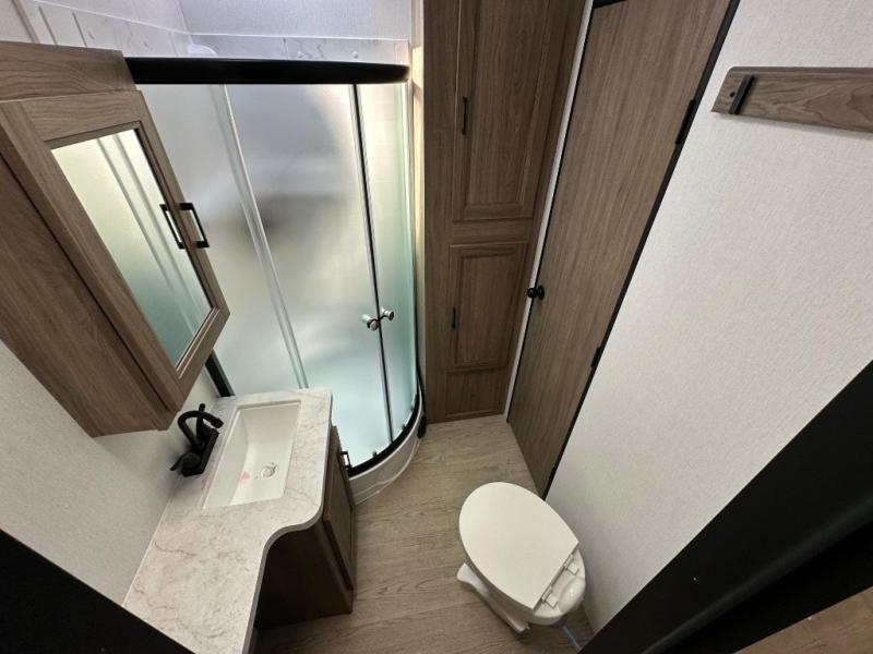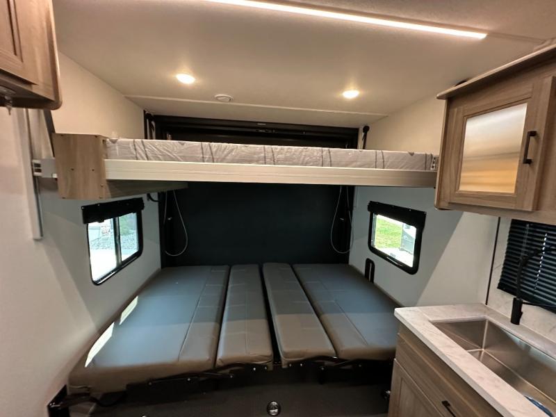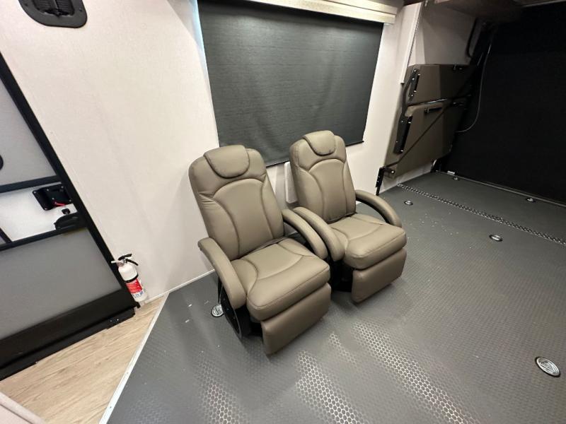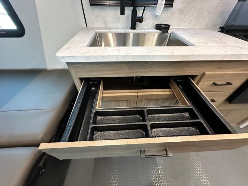 Each Work and Play toy hauler by Forest River is built tough with a mega rail powder coated chassis, a one-piece Tufflex PVC roof membrane, and a fiberglass front cap with rock guard. You will find many convenient features, such as a Winegard Air 360 and TV antenna, an outside spray port, and slam latch door catches to store your riding gear. These toy haulers also include hidden hinge cabinets and doors, USB charging ports in multiple locations, a tankless water heater, plus many more amenities!