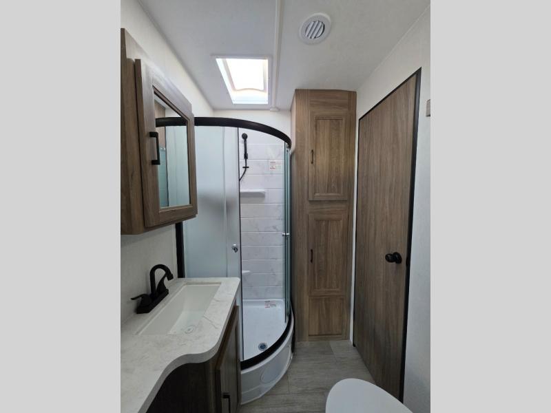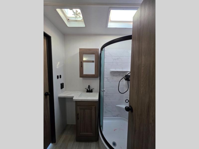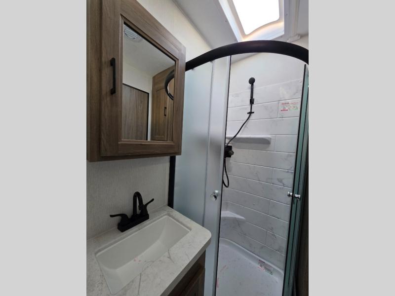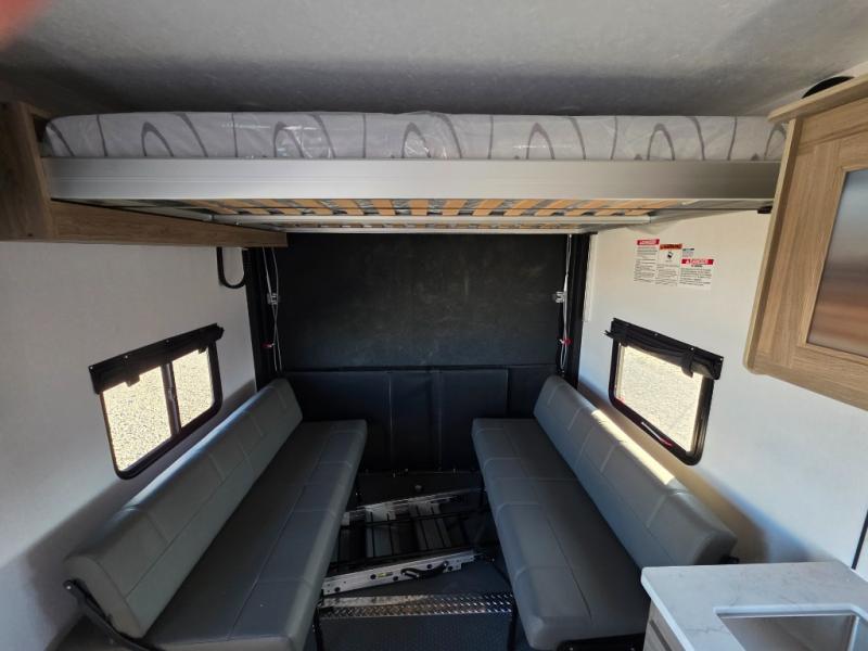 Each Work and Play toy hauler by Forest River is built tough with a mega rail powder coated chassis, a one-piece Tufflex PVC roof membrane, and a fiberglass front cap with rock guard. You will find many convenient features, such as a Winegard Air 360 and TV antenna, an outside spray port, and slam latch door catches to store your riding gear. These toy haulers also include hidden hinge cabinets and doors, USB charging ports in multiple locations, a tankless water heater, plus many more amenities!