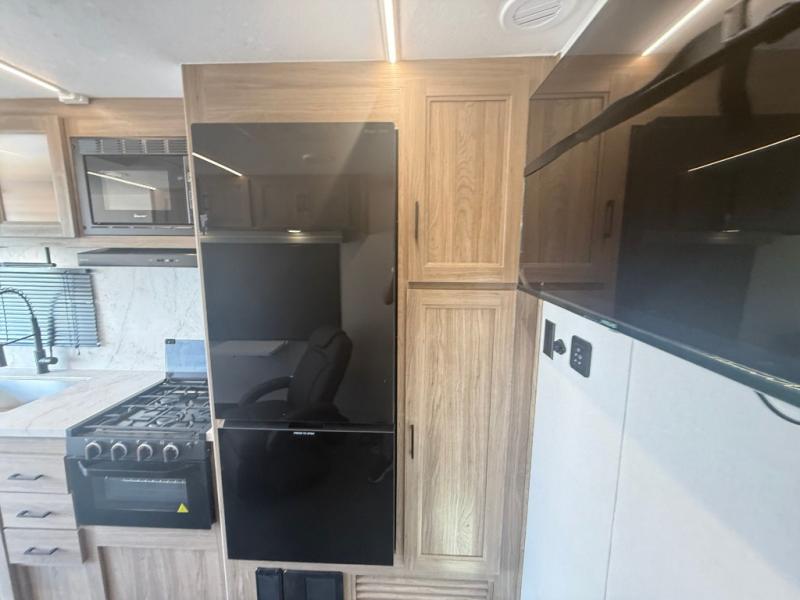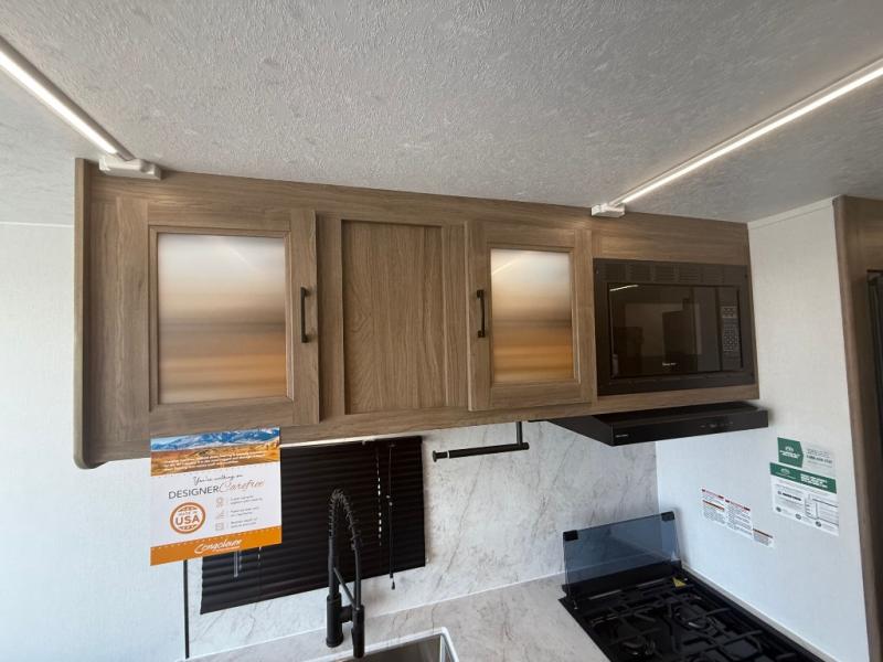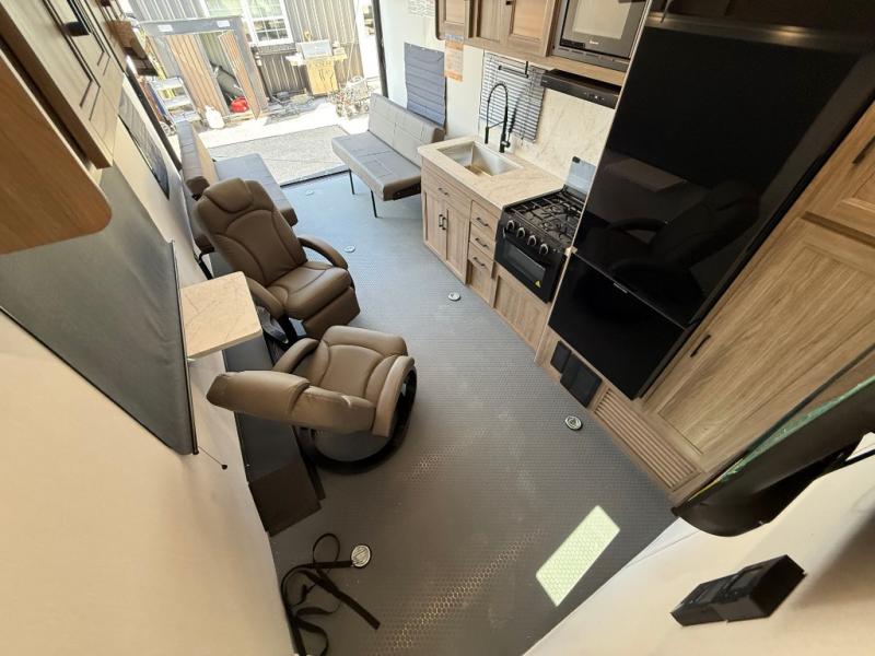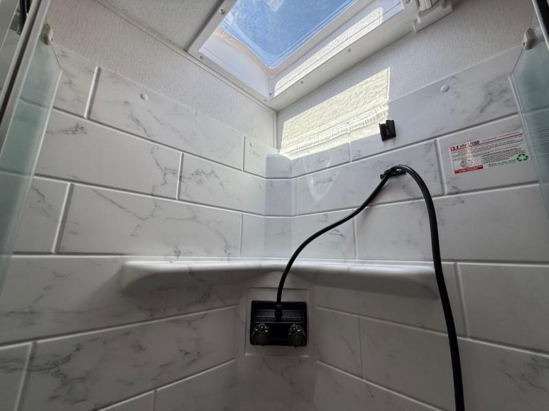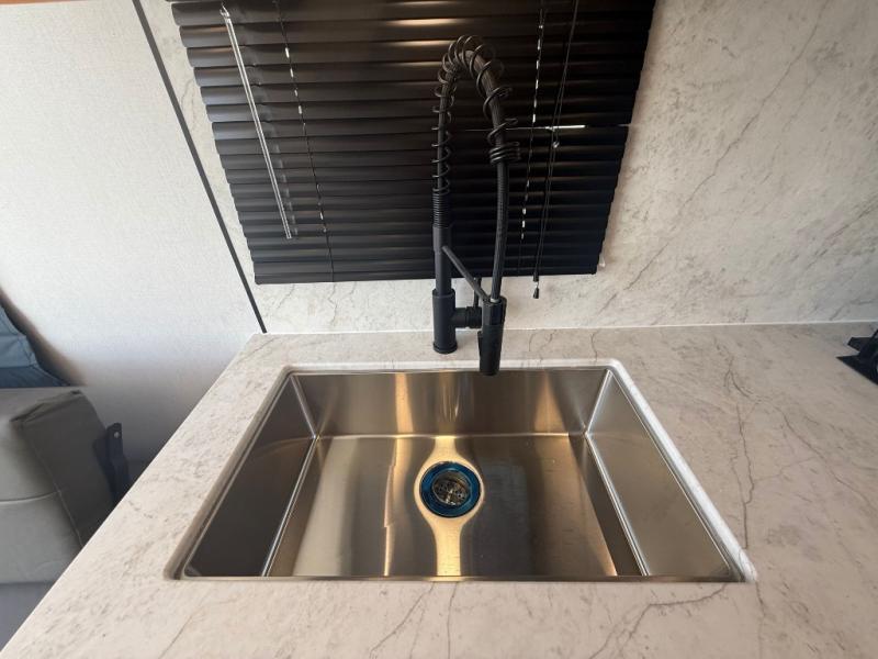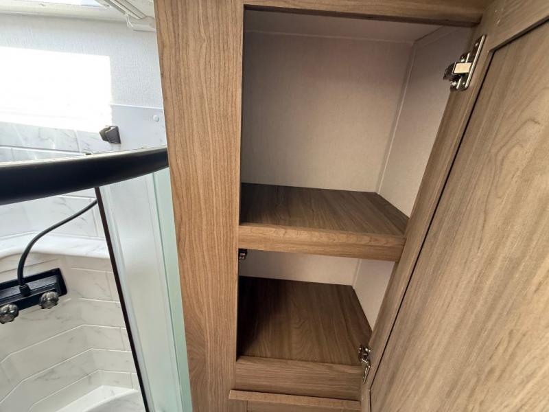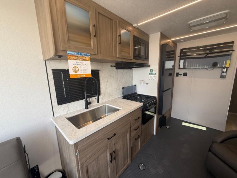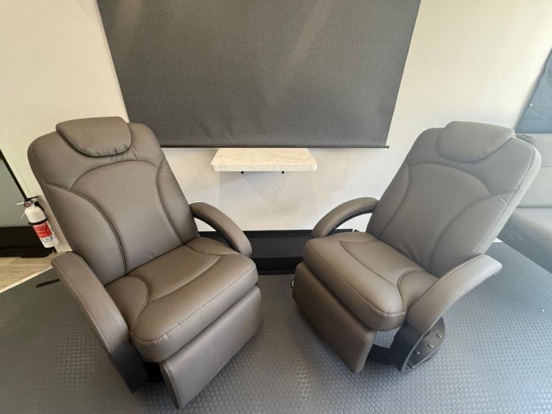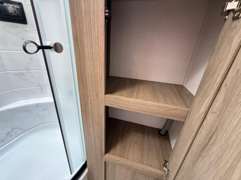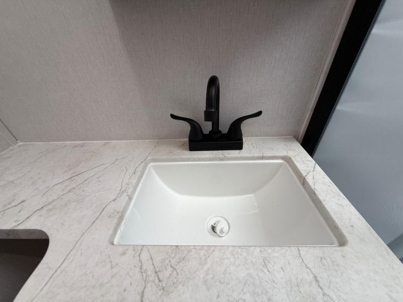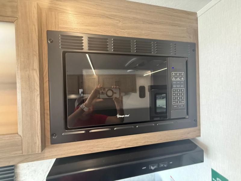 Get ready for a weekend of trail riding with buddies in this toy hauler! You'll have a total of 15' 9" of garage space to load up your dirt bikes or kayaks, and there are two roll-over sofas with a dinette table so you can eat lunch before heading out. The outdoor spray port will allow you to wash off the mud from your tires when you return, and you can choose the optional 30 gallon fuel station so you'll be ready to go the next day. This model also includes a dual entry bath that will create a front master bedroom you are sure to love. Here, you'll sleep soundly on the king bed, and you can keep your clothes wrinkle-free in the dual shirt closets!