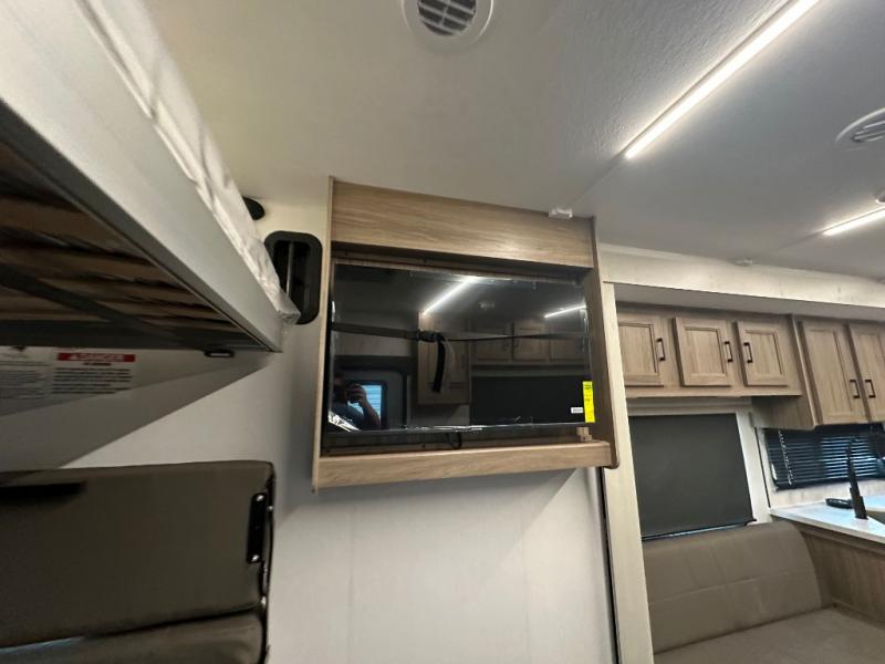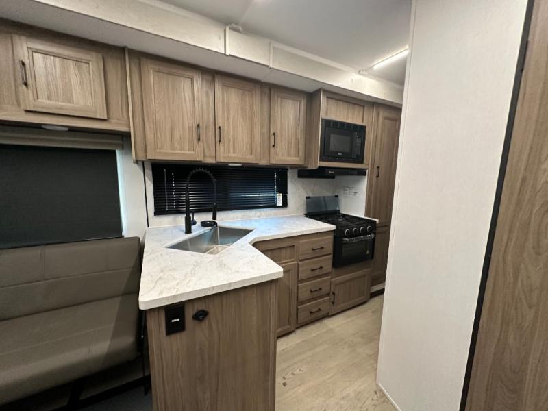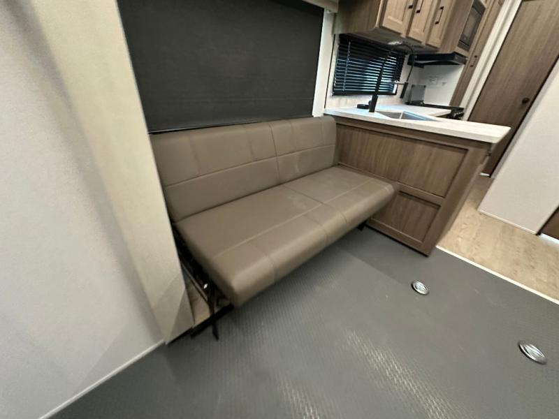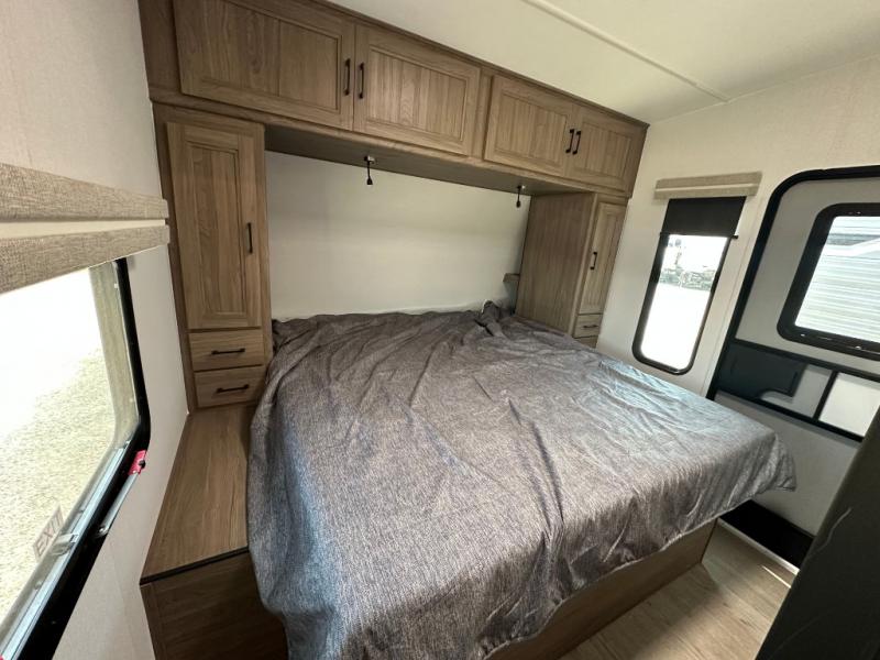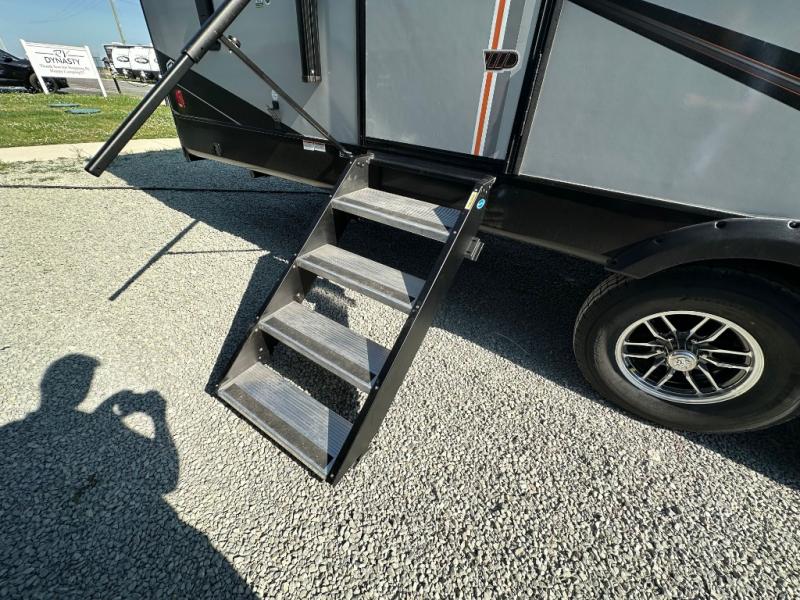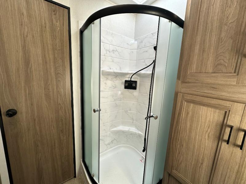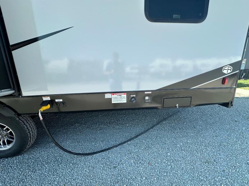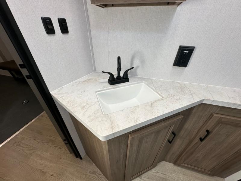 Each Work and Play toy hauler by Forest River is built tough with a mega rail powder coated chassis, a one-piece Tufflex PVC roof membrane, and a fiberglass front cap with rock guard. You will find many convenient features, such as a Winegard Air 360 and TV antenna, an outside spray port, and slam latch door catches to store your riding gear. These toy haulers also include hidden hinge cabinets and doors, USB charging ports in multiple locations, a tankless water heater, plus many more amenities!