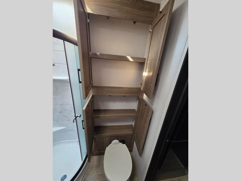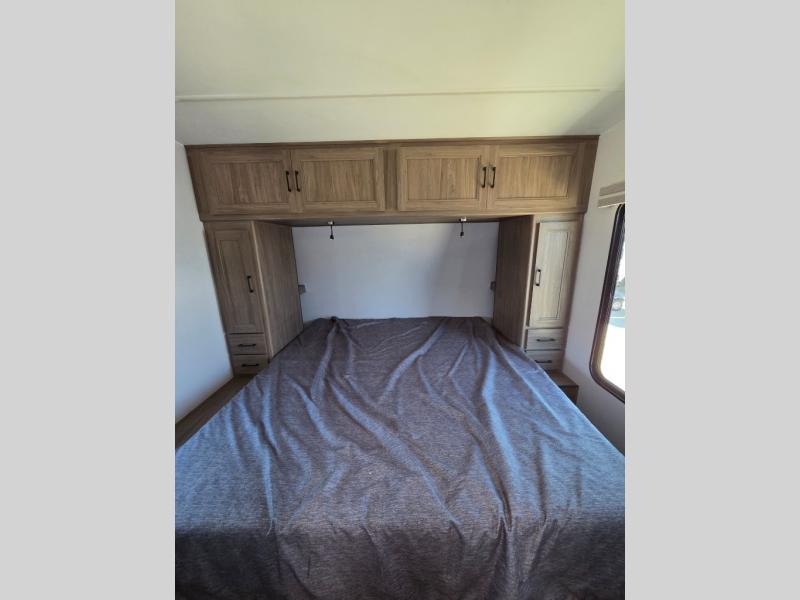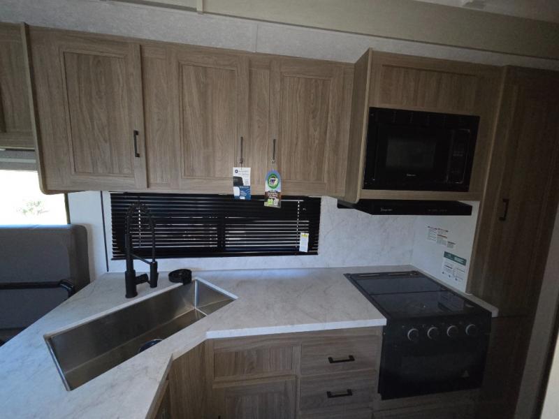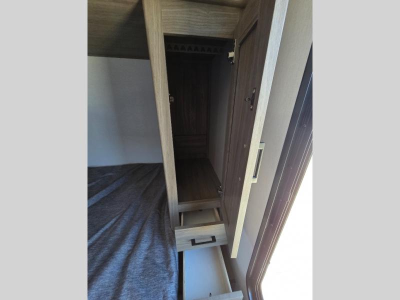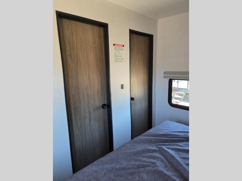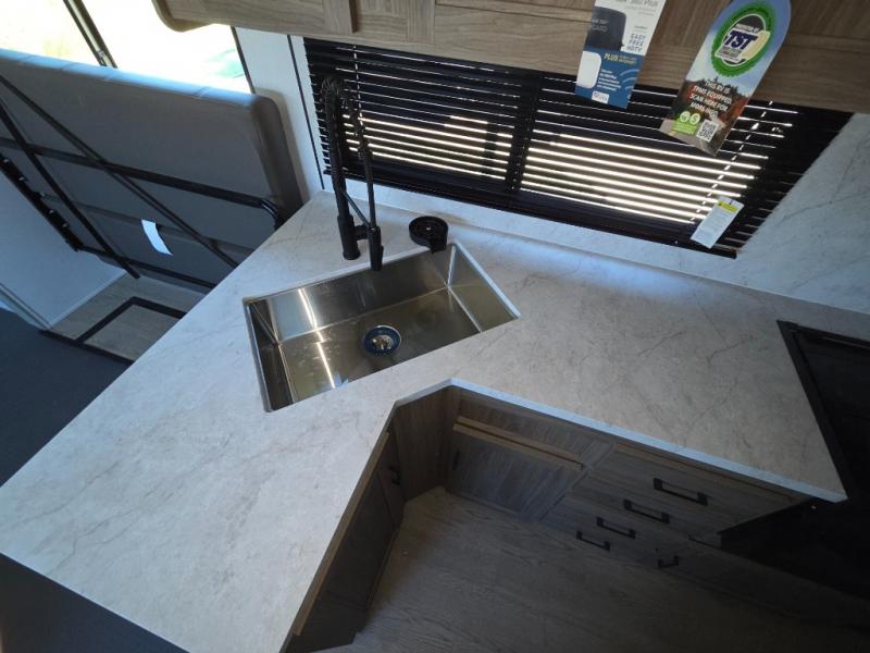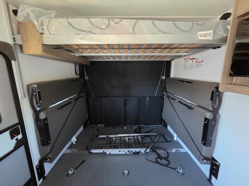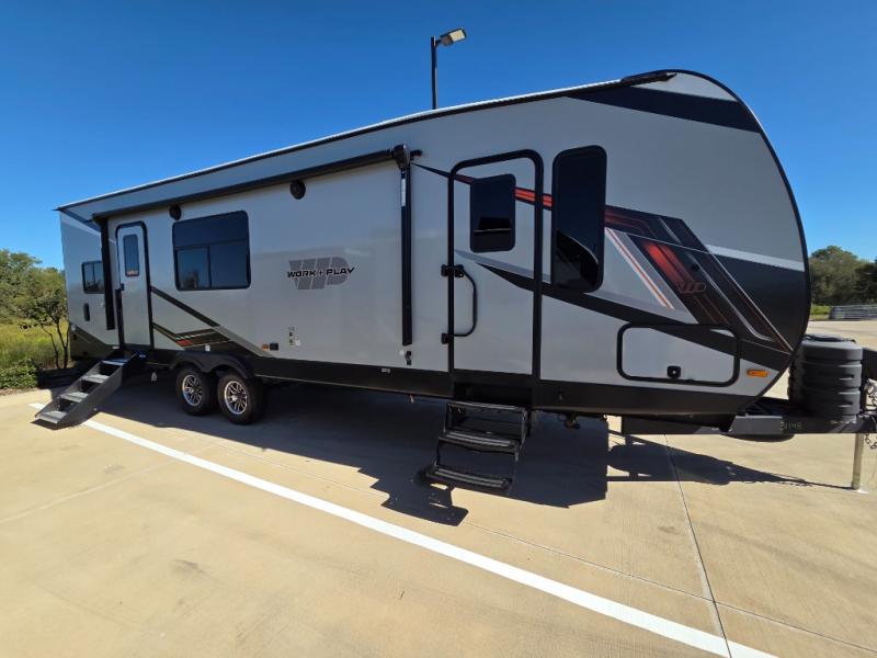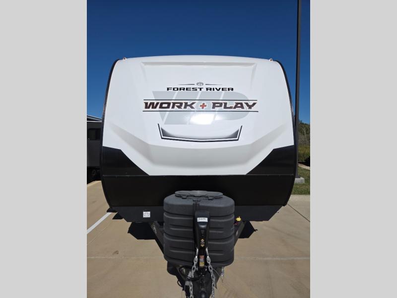 Each Work and Play toy hauler by Forest River is built tough with a mega rail powder coated chassis, a one-piece Tufflex PVC roof membrane, and a fiberglass front cap with rock guard. You will find many convenient features, such as a Winegard Air 360 and TV antenna, an outside spray port, and slam latch door catches to store your riding gear. These toy haulers also include hidden hinge cabinets and doors, USB charging ports in multiple locations, a tankless water heater, plus many more amenities!