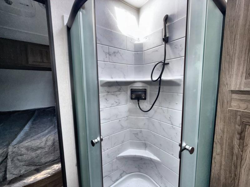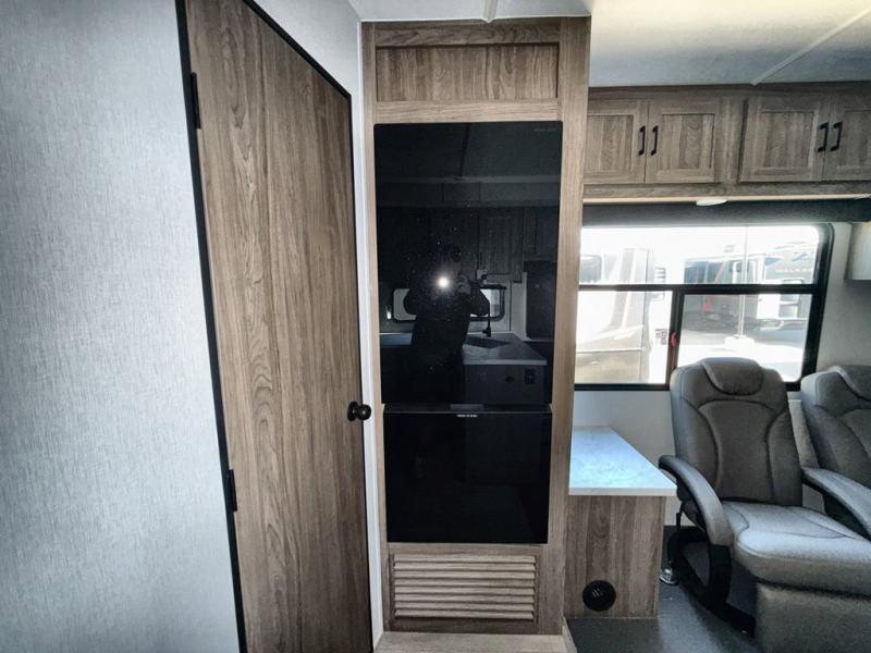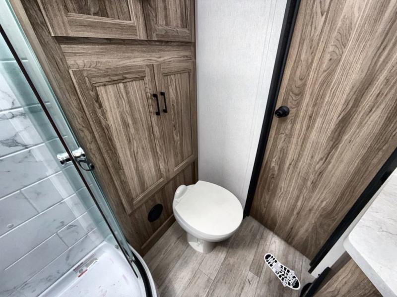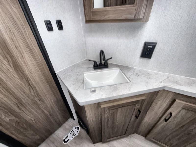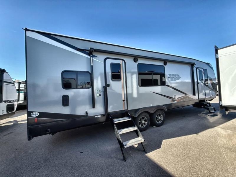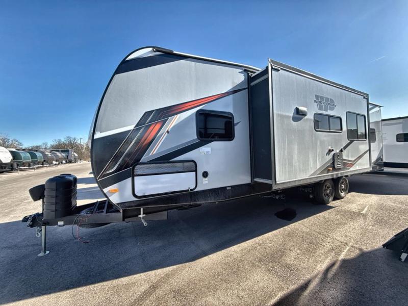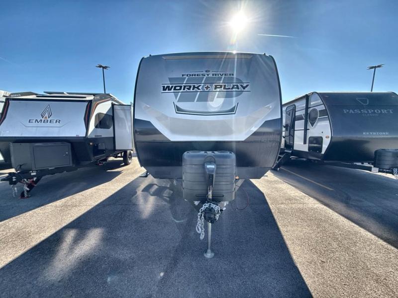Each Work and Play toy hauler by Forest River is built tough with a mega rail powder coated chassis, a one-piece Tufflex PVC roof membrane, and a fiberglass front cap with rock guard. You will find many convenient features, such as a Winegard Air 360 and TV antenna, an outside spray port, and slam latch door catches to store your riding gear. These toy haulers also include hidden hinge cabinets and doors, USB charging ports in multiple locations, a suburban tankless water heater, plus many more amenities!