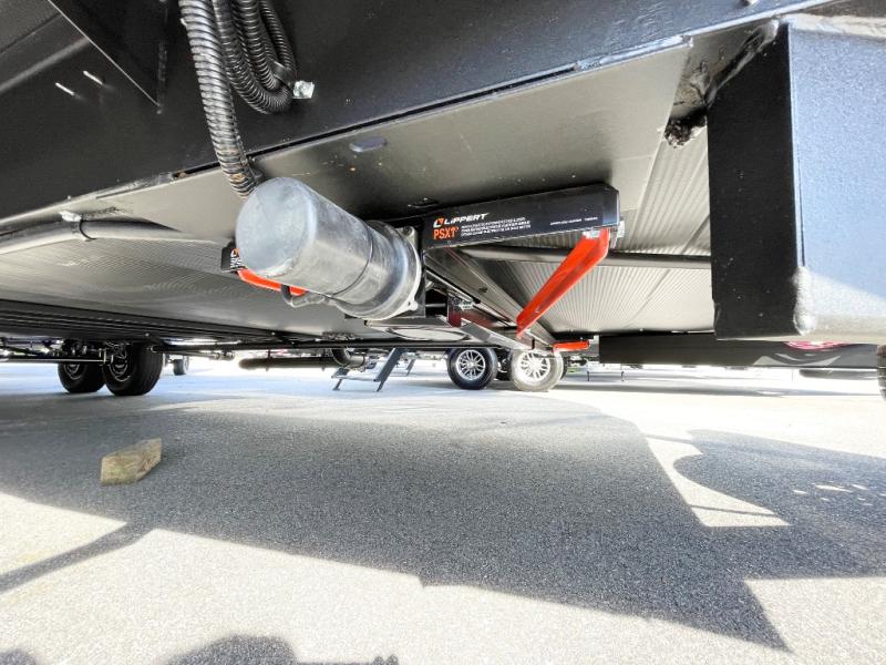 You will love the amount of space you have in this toy hauler with dual slides and dual entry doors. There is a spacious garage where you can load up dirt bikes, a side-by-side or kayaks, and the Zero Gravity ramp door will make unloading easier than ever. The front of this model is shared with the private bedroom and dual entry bath. You'll sleep soundly on the king bed slide out here, while your guests take the roll-over sofas in the garage. A combined kitchen and living area includes a theater seats within a slide, a hidden storage behind the TV, and all the appliances needed to create meals each day. This high profile model also features pull-down roller night shades, generator prep, a 300W solar panel, and more stand-out features!