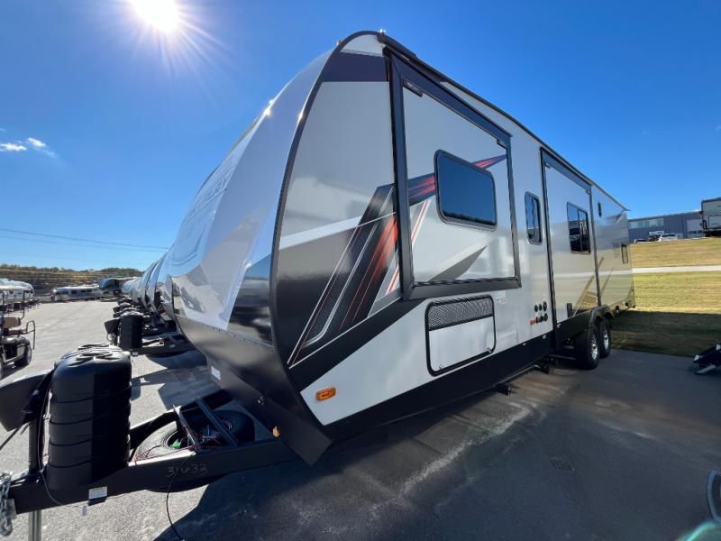 You will love the amount of space you have in this toy hauler with dual slides and dual entry doors. There is a spacious garage where you can load up dirt bikes, a side-by-side or kayaks, and the Zero Gravity ramp door will make unloading easier than ever. The front of this model is shared with the private bedroom and dual entry bath. You'll sleep soundly on the king bed slide out here, while your guests take the roll-over sofas in the garage. A combined kitchen and living area includes a theater seats within a slide, a hidden storage behind the TV, and all the appliances needed to create meals each day. This high profile model also features pull-down roller night shades, generator prep, a 300W solar panel, and more stand-out features!