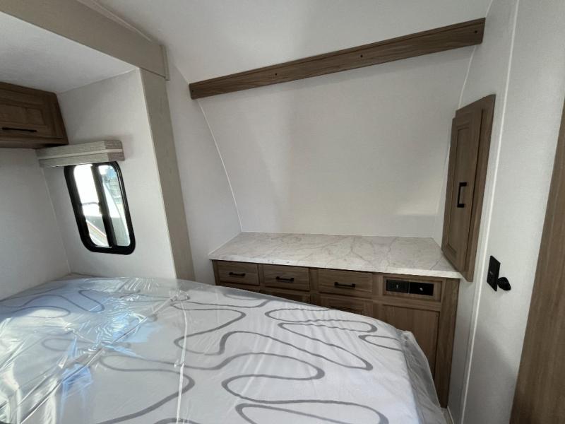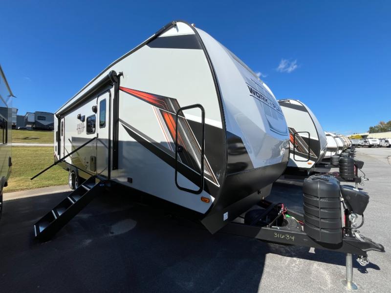 Each Work and Play toy hauler by Forest River is built tough with a mega rail powder coated chassis, a one-piece Tufflex PVC roof membrane, and a fiberglass front cap with rock guard. You will find many convenient features, such as a Winegard Air 360 and TV antenna, an outside spray port, and slam latch door catches to store your riding gear. These toy haulers also include hidden hinge cabinets and doors, USB charging ports in multiple locations, a suburban tankless water heater, plus many more amenities!