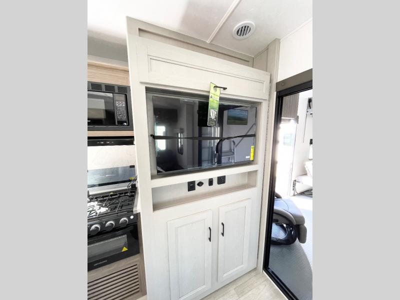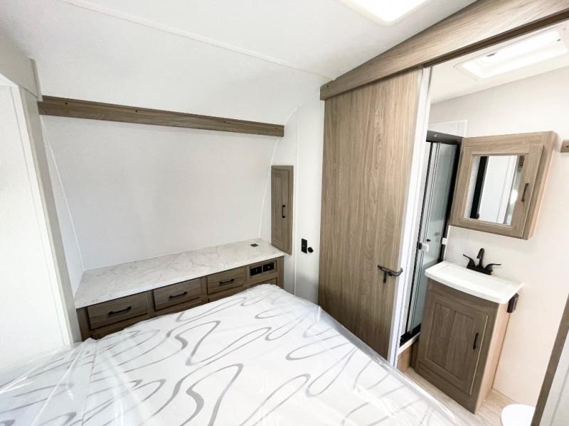 Each Work and Play toy hauler by Forest River is built tough with a mega rail powder coated chassis, a one-piece Tufflex PVC roof membrane, and a fiberglass front cap with rock guard. You will find many convenient features, such as a Winegard Air 360 and TV antenna, an outside spray port, and slam latch door catches to store your riding gear. These toy haulers also include hidden hinge cabinets and doors, USB charging ports in multiple locations, a tankless water heater, plus many more amenities!