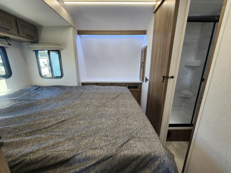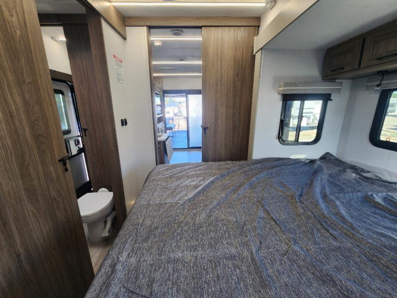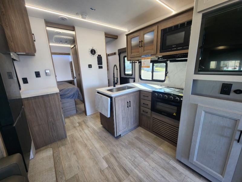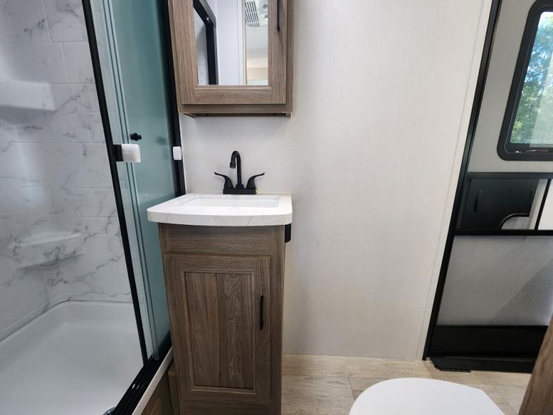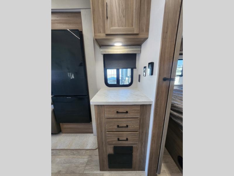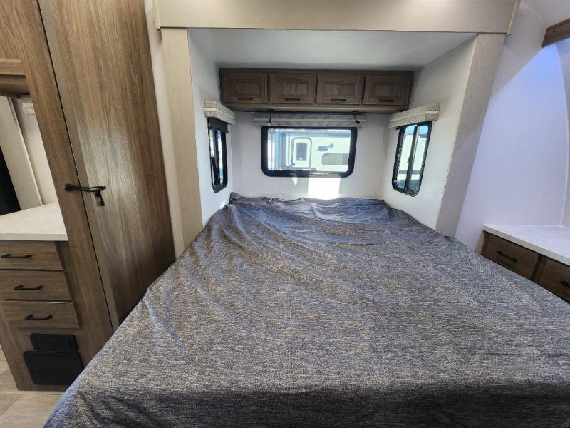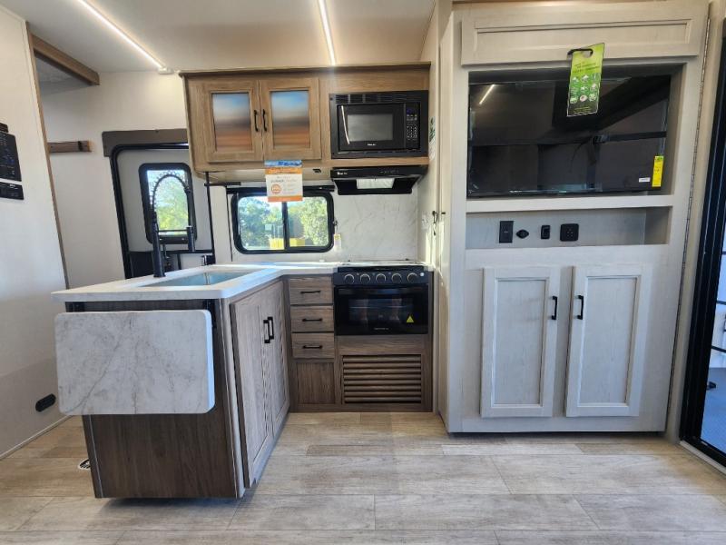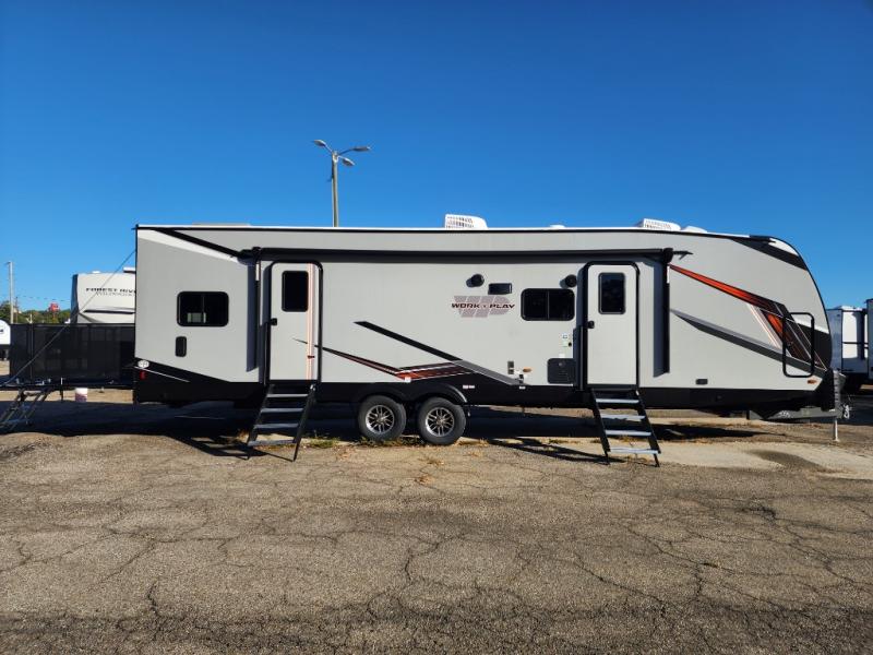 Each Work and Play toy hauler by Forest River is built tough with a mega rail powder coated chassis, a one-piece Tufflex PVC roof membrane, and a fiberglass front cap with rock guard. You will find many convenient features, such as a Winegard Air 360 and TV antenna, an outside spray port, and slam latch door catches to store your riding gear. These toy haulers also include hidden hinge cabinets and doors, USB charging ports in multiple locations, a suburban tankless water heater, plus many more amenities!