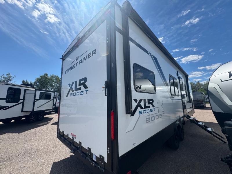 Boost into action camping with one of these Forest River XLR Boost fifth wheel toy haulers or travel trailer toy haulers! The 8' 5" wide body design not only provides ample interior space, but also packs in all of the luxurious features to make your trips great. There is fiberglass flooring insulation, a 35K BTU furnace and built-in vents within the mandatory Climate Comfort Package so you can camp all year around. The Convenience Package is also mandatory, and includes a tankless water heater, a French door black refrigerator and more features to make each trip accommodating. You will love the decorative kitchen backsplash inside, as well as a residential style kitchen faucet, a bath vent fan, and a USB charging station to keep your electronics charged and ready to go.