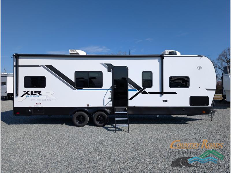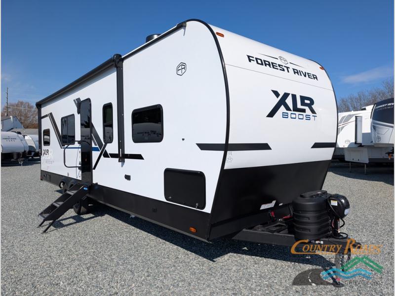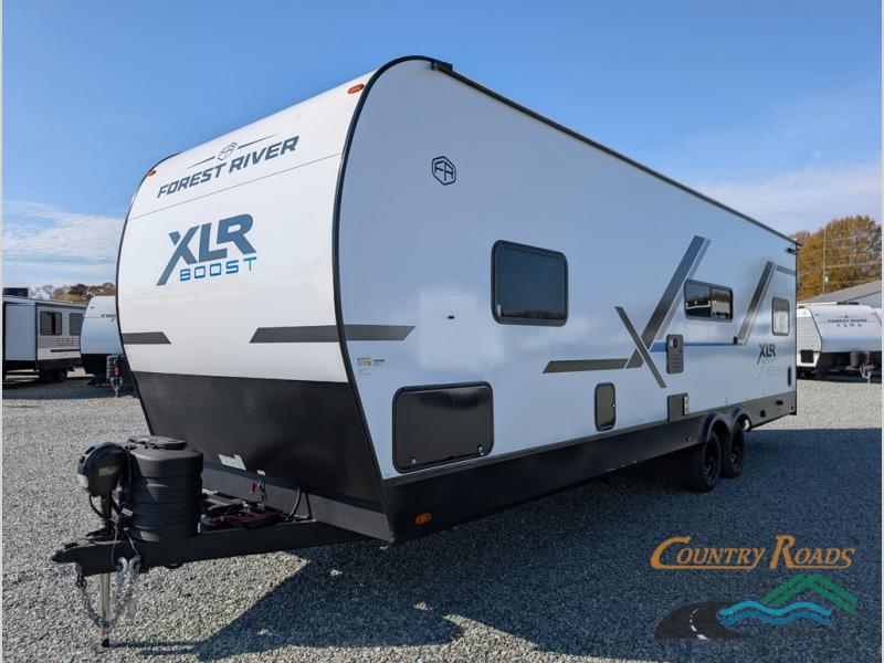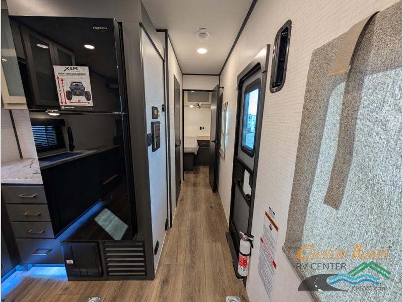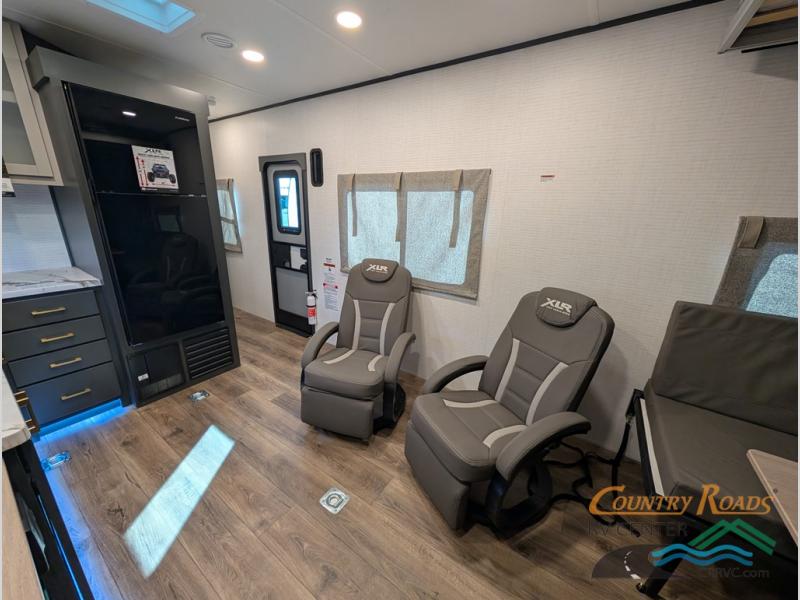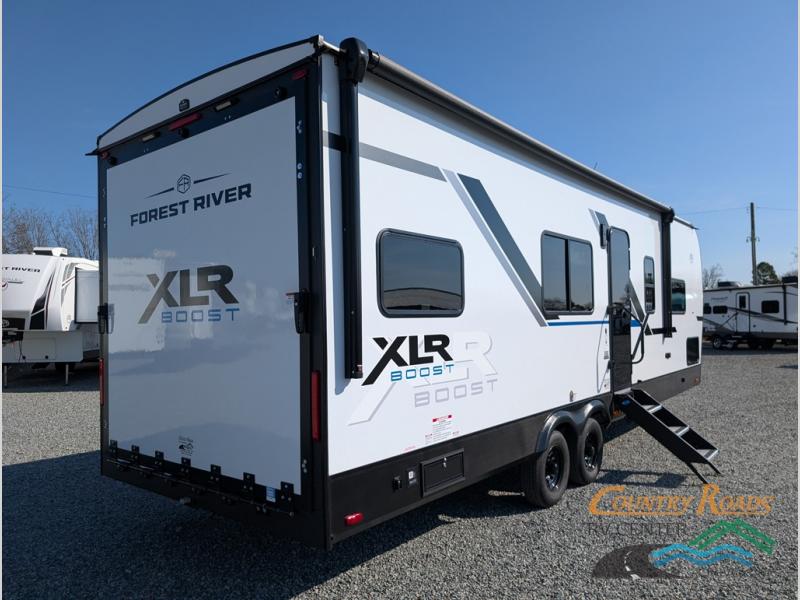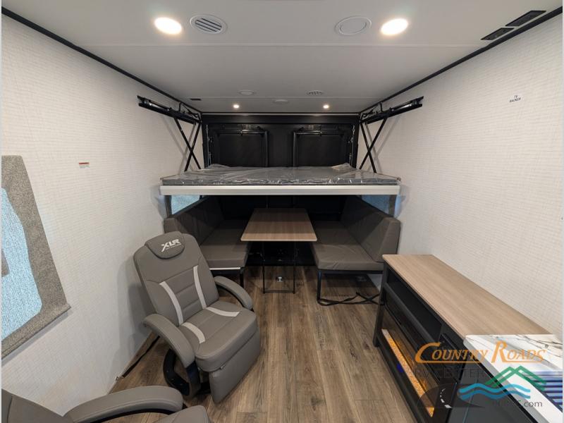 Boost into action camping with one of these Forest River XLR Boost fifth wheel toy haulers or travel trailer toy haulers! The 8' 5" wide body design not only provides ample interior space, but also packs in all of the luxurious features to make your trips great. There is fiberglass flooring insulation, a 35K BTU furnace and built-in vents within the mandatory Climate Comfort Package so you can camp all year around. The Convenience Package is also mandatory, and includes a tankless water heater, a French door black refrigerator and more features to make each trip accommodating. You will love the decorative kitchen backsplash inside, as well as a residential style kitchen faucet, a bath vent fan, and a USB charging station to keep your electronics charged and ready to go.