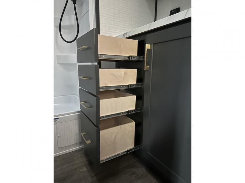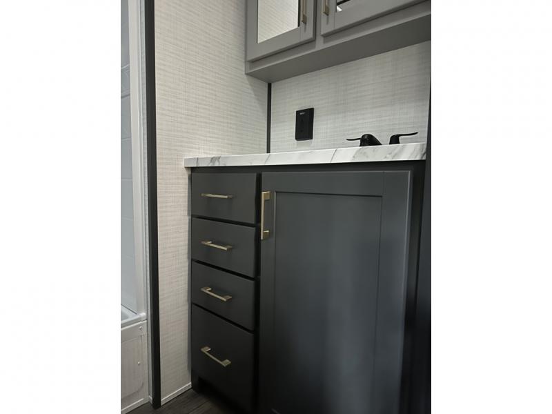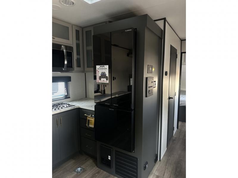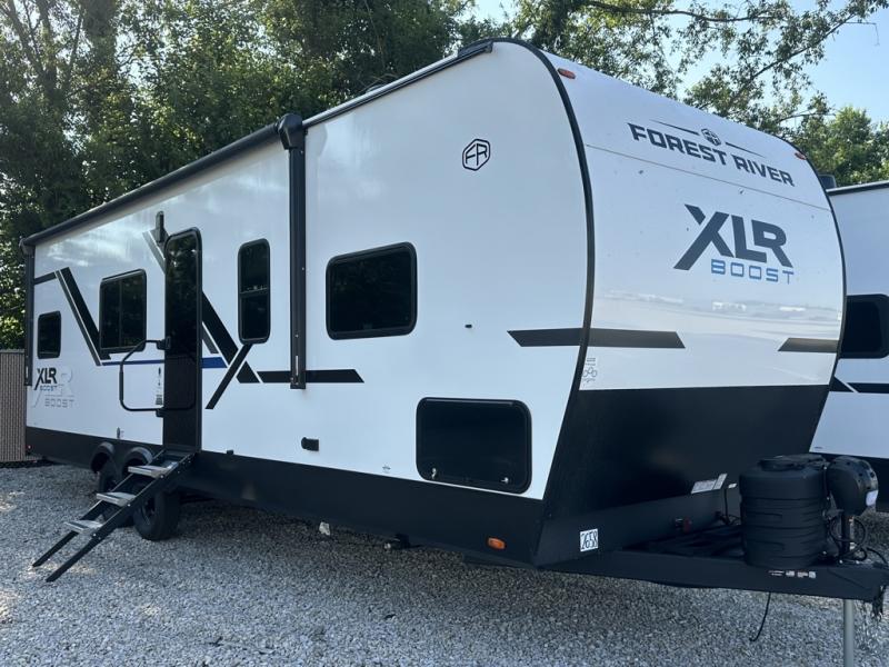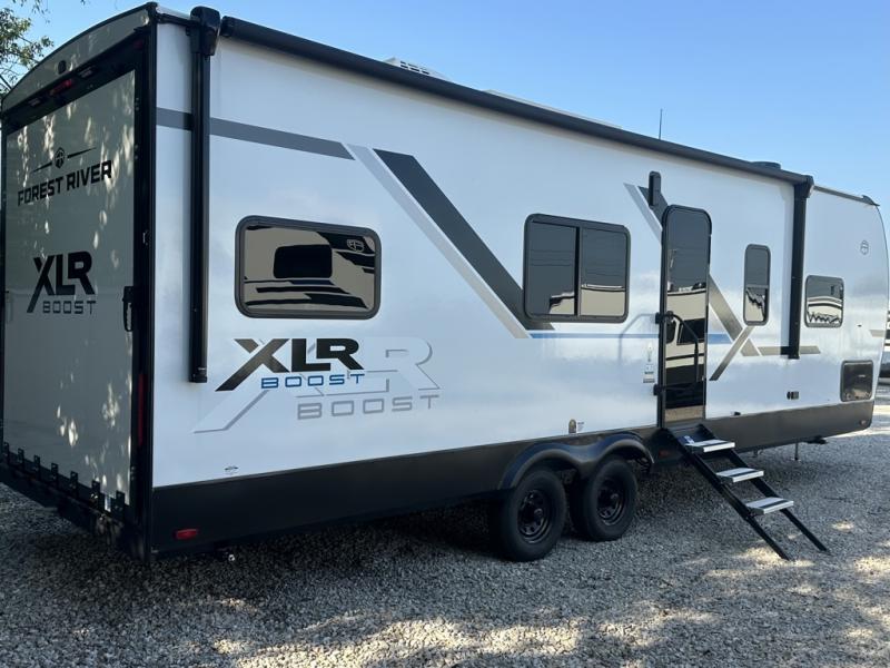 Boost into action camping with one of these Forest River XLR Boost fifth wheel toy haulers or travel trailer toy haulers! The 8' 5" wide body design not only provides ample interior space, but also packs in all of the luxurious features to make your trips great. There is fiberglass flooring insulation, a 35K BTU furnace and built-in vents within the mandatory Climate Comfort Package so you can camp all year around. The Convenience Package is also mandatory, and includes a tankless water heater, a French door black refrigerator and more features to make each trip accommodating. You will love the decorative kitchen backsplash inside, as well as a residential style kitchen faucet, a bath vent fan, and a USB charging station to keep your electronics charged and ready to go.