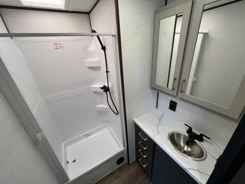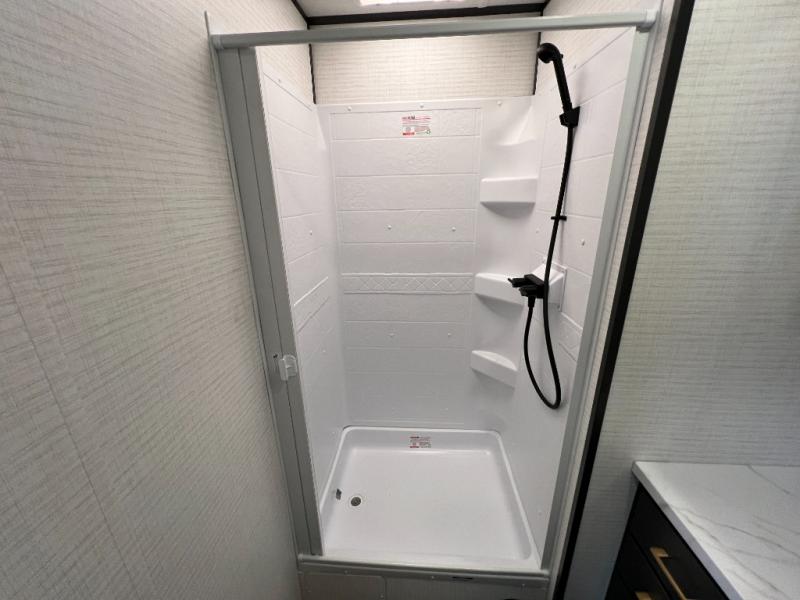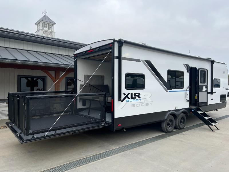 Boost into action camping with one of these Forest River XLR Boost fifth wheel toy haulers or travel trailer toy haulers! The 8' 5" wide body design not only provides ample interior space, but also packs in all of the luxurious features to make your trips great. There is fiberglass flooring insulation, a 35K BTU furnace and built-in vents within the mandatory Climate Comfort Package so you can camp all year around. The Convenience Package is also mandatory, and includes a tankless water heater, a French door black refrigerator and more features to make each trip accommodating. You will love the decorative kitchen backsplash inside, as well as a residential style kitchen faucet, a bath vent fan, and a USB charging station to keep your electronics charged and ready to go.