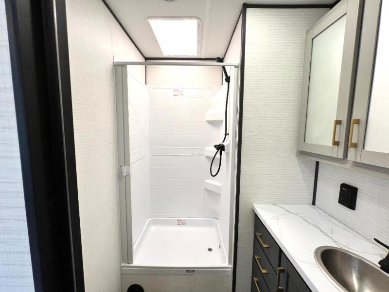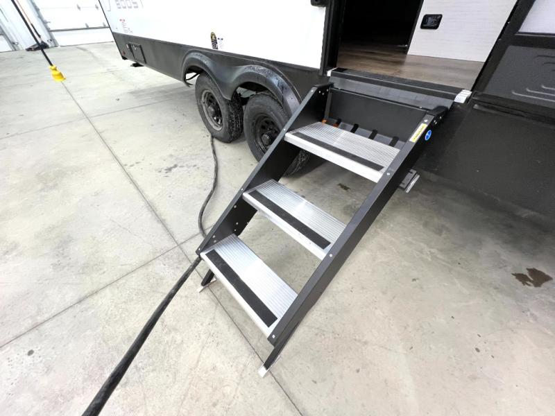 Boost into action camping with one of these Forest River XLR Boost fifth wheel toy haulers or travel trailer toy haulers! The 8' 5" wide body design not only provides ample interior space, but also packs in all of the luxurious features to make your trips great. There is fiberglass flooring insulation, a 35K BTU furnace and built-in vents within the mandatory Climate Comfort Package so you can camp all year around. The Convenience Package is also mandatory, and includes a tankless water heater, a French door black refrigerator and more features to make each trip accommodating. You will love the decorative kitchen backsplash inside, as well as a residential style kitchen faucet, a bath vent fan, and a USB charging station to keep your electronics charged and ready to go.