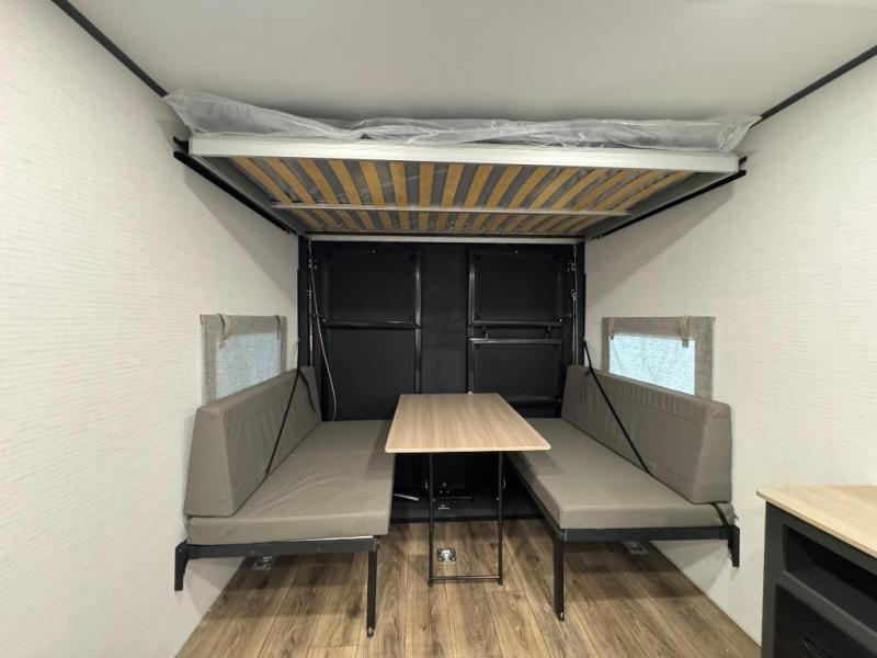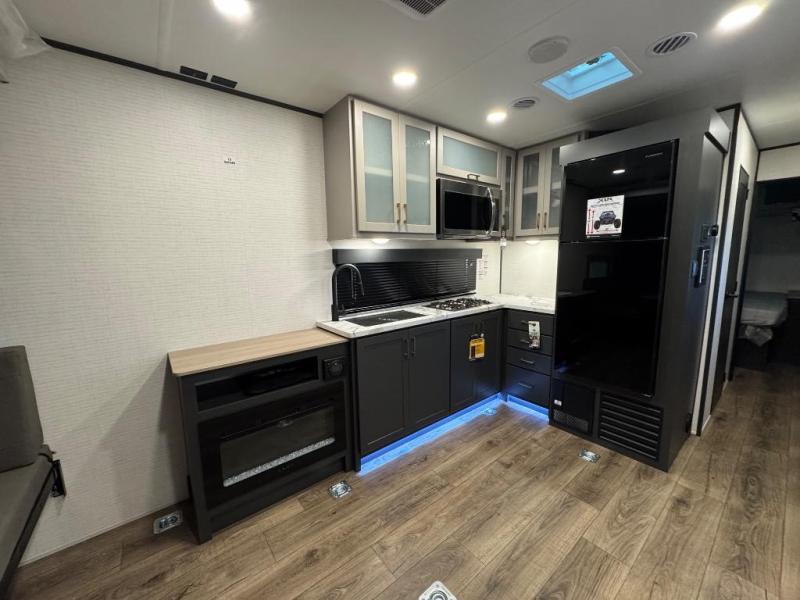 This toy hauler with a 14' 2" garage is sure to meet all your camping needs! Once you unload using the 3,000 lb. capacity ramp door, you can enjoy the 1,500 lb. capacity patio deck and enjoy a cold drink. There is seating space on the dual gaucho sofas with a table in between, and your guests can sleep on the queen-size Euro bed lift above. A full kitchen lets you cook meals each day, and the fireplace will make your space feel more like home. There is a spacious full bath where you can clean up each day, and the front private bedroom will feel just like home with its RV queen bed and generous storage space!