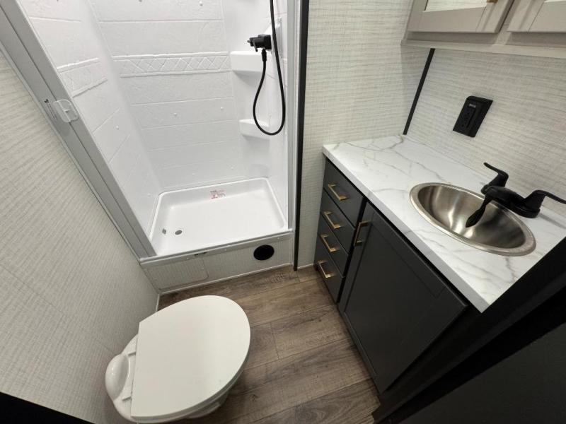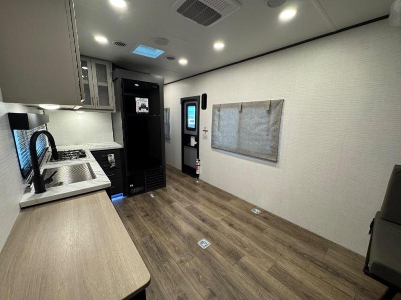 Boost into action camping with one of these Forest River XLR Boost fifth wheel toy haulers or travel trailer toy haulers! The 8' 5" wide body design not only provides ample interior space, but also packs in all of the luxurious features to make your trips great. There is fiberglass flooring insulation, a 35K BTU furnace and built-in vents within the mandatory Climate Comfort Package so you can camp all year around. The Convenience Package is also mandatory, and includes a tankless water heater, a French door black refrigerator and more features to make each trip accommodating. You will love the decorative kitchen backsplash inside, as well as a residential style kitchen faucet, a bath vent fan, and a USB charging station to keep your electronics charged and ready to go.