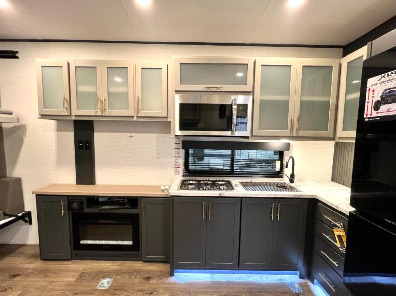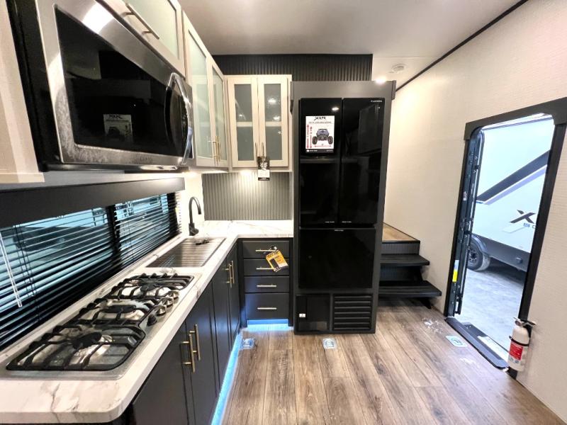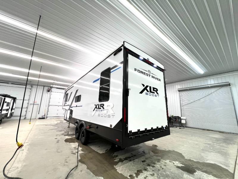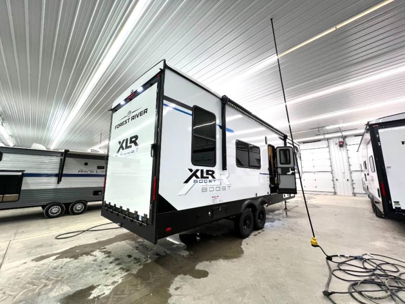 Boost into action camping with one of these Forest River XLR Boost fifth wheel toy haulers or travel trailer toy haulers! The 8' 5" wide body design not only provides ample interior space, but also packs in all of the luxurious features to make your trips great. There is fiberglass flooring insulation, a 35K BTU furnace and built-in vents within the mandatory Climate Comfort Package so you can camp all year around. The Convenience Package is also mandatory, and includes a tankless water heater, a French door black refrigerator and more features to make each trip accommodating. You will love the decorative kitchen backsplash inside, as well as a residential style kitchen faucet, a bath vent fan, and a USB charging station to keep your electronics charged and ready to go.