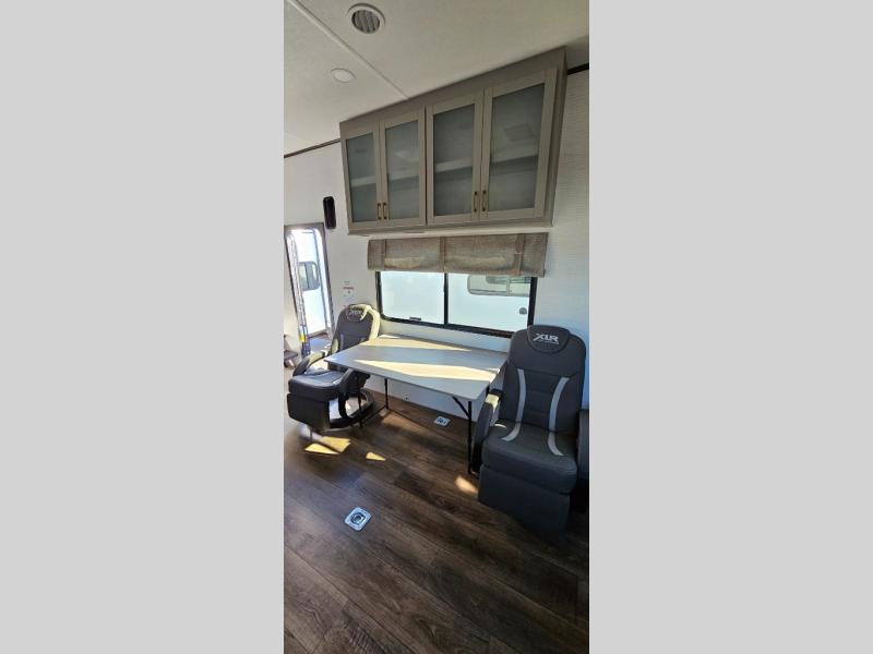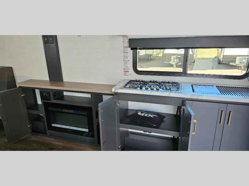 Boost into action camping with one of these Forest River XLR Boost fifth wheel toy haulers or travel trailer toy haulers! The 8' 5" wide body design not only provides ample interior space, but also packs in all of the luxurious features to make your trips great. There is fiberglass flooring insulation, a 35K BTU furnace and built-in vents within the mandatory Climate Comfort Package so you can camp all year around. The Convenience Package is also mandatory, and includes a tankless water heater, a French door black refrigerator and more features to make each trip accommodating. You will love the decorative kitchen backsplash inside, as well as a residential style kitchen faucet, a bath vent fan, and a USB charging station to keep your electronics charged and ready to go.