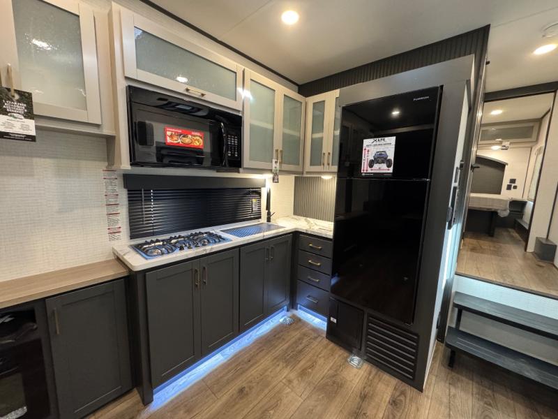 Boost into action camping with one of these Forest River XLR Boost fifth wheel toy haulers or travel trailer toy haulers! The 8' 5" wide body design not only provides ample interior space, but also packs in all of the luxurious features to make your trips great. There is fiberglass flooring insulation, a 35K BTU furnace and built-in vents within the mandatory Climate Comfort Package so you can camp all year around. The Convenience Package is also mandatory, and includes a tankless water heater, a French door black refrigerator and more features to make each trip accommodating. You will love the decorative kitchen backsplash inside, as well as a residential style kitchen faucet, a bath vent fan, and a USB charging station to keep your electronics charged and ready to go.