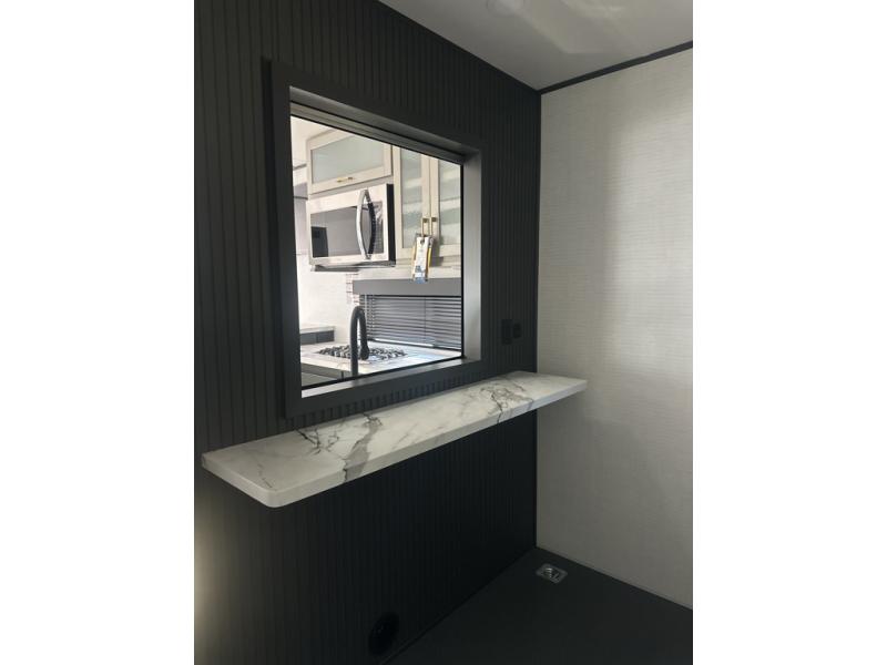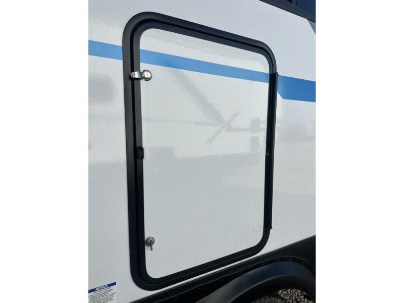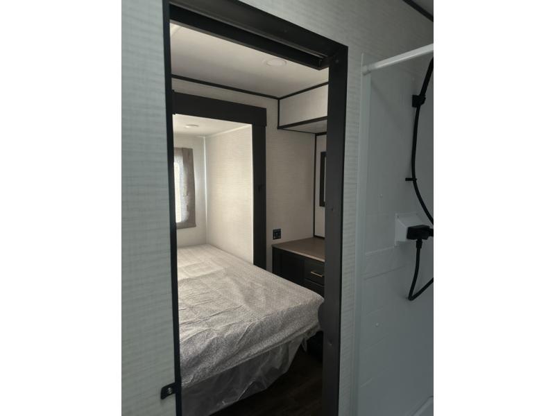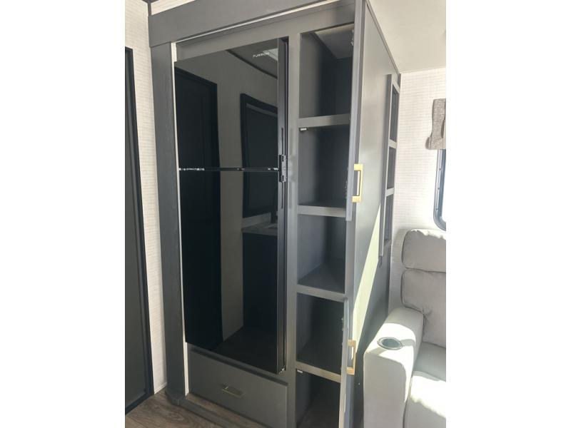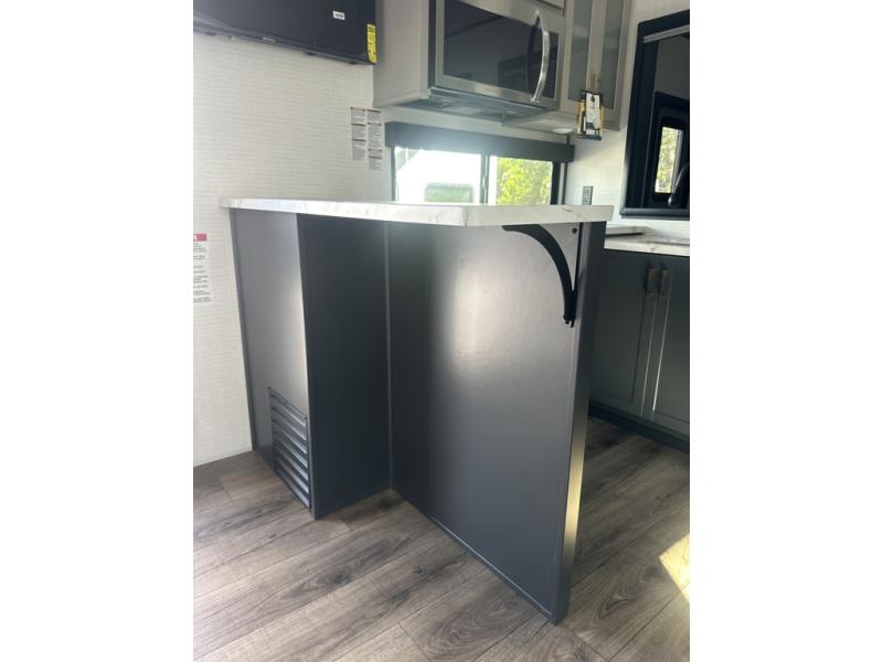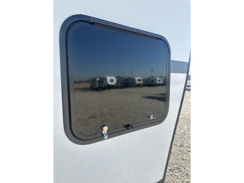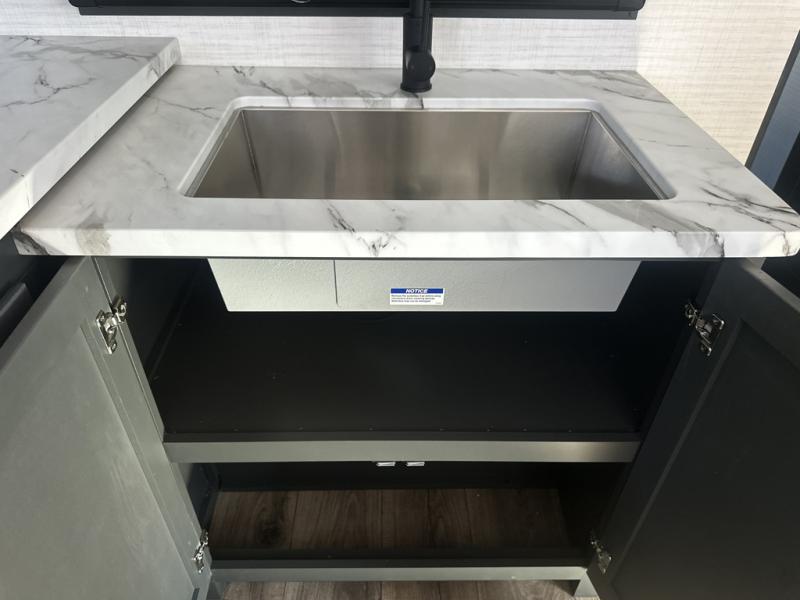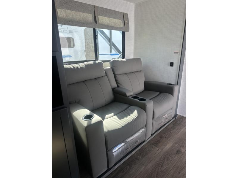 You are sure to love this toy hauler featuring 13' of toy parking space for your favorite ride-on toys, kayaks, or dirt bikes! In the garage area, you will find dual opposing sofas that create a queen bed at night, plus a Euro bed above for more guests to sleep on if needed. There are 5K tiedowns to completely secure your load for travel, and a bar top with two stools to hang out after a ride. Head to the main living/kitchen area to prepare a quick lunch on the three burner cooktop, then relax on the sofa within the slide. The front of this toy hauler master bedroom shares the space with the dual entry bath you are sure to love, plus there is a dresser with a mirror to get ready each day, and TV prep in this space. The exterior has many features you will love like the docking station, power awning, as well as ample storage! The rear ramp can also offer you a 1,500 lb. capacity party deck outdoors to enjoy!
