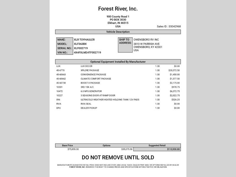 CALL FOR BEST PRICEForest River XLR Boost X toy hauler 363BX highlights: