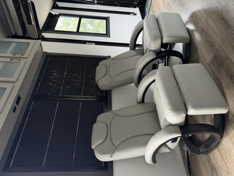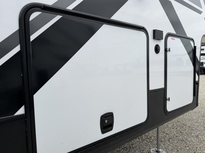 The outdoor enthusiasts have met their match with the XLR Nitro toy haulers by Forest River. The vacuum-bonded aluminum framed sidewalls, high gloss fiberglass exterior, and one-piece roof membrane are just a few durable construction materials you will find on these models. There is a weatherproof insulated ramp door, 5,000 lb. cargo tie-downs, a 40 gallon fuel station, and more convenient garage features that will make camping with toys easier than ever. You'll appreciate smooth towing thanks to the MORryde CRE3000 suspension enhancement and 16" Goodyear Endurance tires. A 200 watt roof-mounted solar panel, along with electric awning(s) with LED lights, undercarriage lighting, and friction hinge entry door(s). Some of the innovative technology features include a Winegard Air 360 antenna with WiFi prep and 4G LTE, convenient USB charging stations. You will also find diamond solid surface kitchen countertops, residential tile backsplash, hardwood cabinet doors, hardwood window trim package, and many more interior comforts.