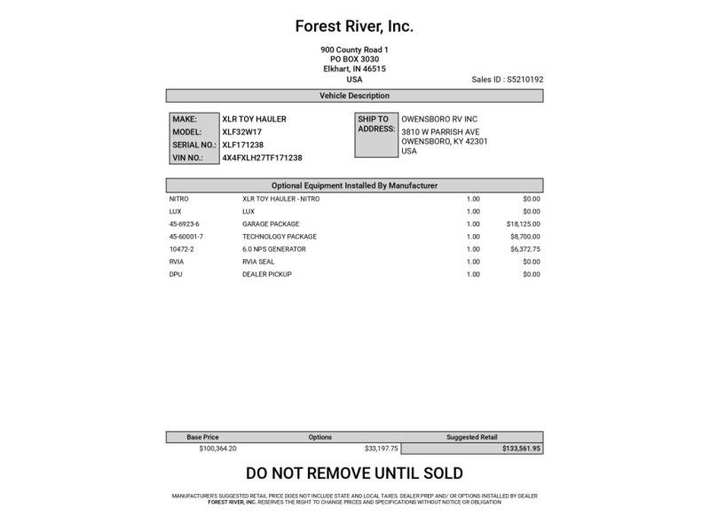 Stock# RV171238