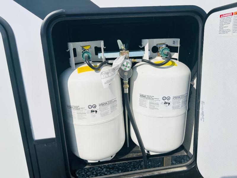 The outdoor enthusiasts have met their match with the XLR Nitro toy haulers by Forest River. The vacuum-bonded aluminum framed sidewalls, high gloss fiberglass exterior, and one-piece roof membrane are just a few durable construction materials you will find on these models. There is a weatherproof insulated ramp door, 5,000 lb. cargo tie-downs, a 40 gallon fuel station, and more convenient garage features that will make camping with toys easier than ever. You'll appreciate smooth towing thanks to the MORryde CRE3000 suspension enhancement and 16" Goodyear Endurance tires. A 200 watt roof-mounted solar panel, along with electric awning(s) with LED lights, undercarriage lighting, and friction hinge entry door(s). Some of the innovative technology features include a Winegard Air 360 antenna with WiFi prep and 4G LTE, convenient USB charging stations. You will also find diamond solid surface kitchen countertops, residential tile backsplash, hardwood cabinet doors, hardwood window trim package, and many more interior comforts.