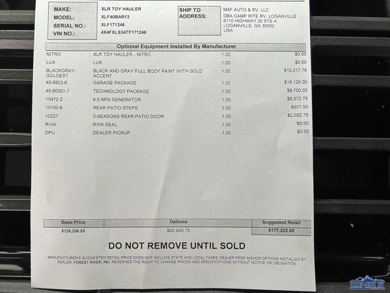 BLACK & GOLD FULL BODY PAINTForest River XLR Nitro toy hauler 40BAR13 highlights: