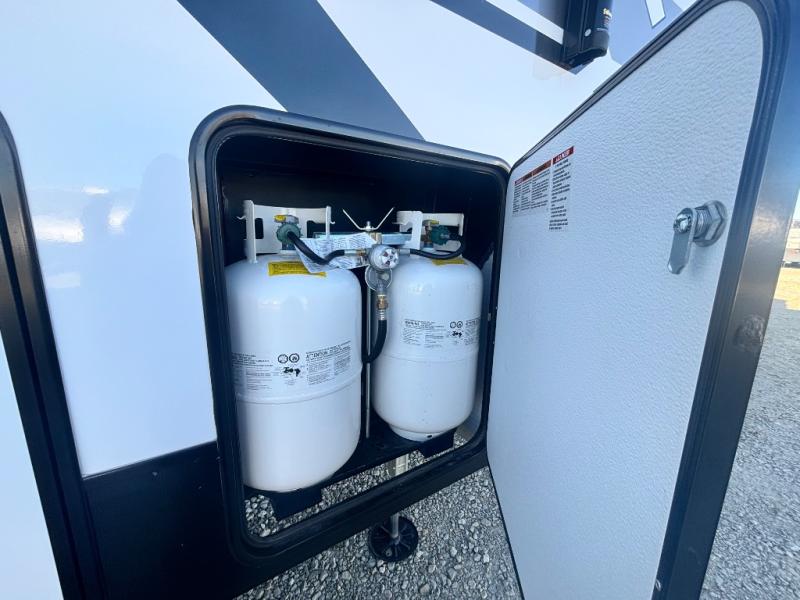 The outdoor enthusiasts have met their match with the XLR Nitro toy haulers by Forest River. The vacuum-bonded aluminum framed sidewalls, high gloss fiberglass exterior, and one-piece roof membrane are just a few durable construction materials you will find on these models. There is a weatherproof insulated ramp door, 5,000 lb. cargo tie-downs, a 40 gallon fuel station, and more convenient garage features that will make camping with toys easier than ever. You'll appreciate smooth towing thanks to the MORryde CRE3000 suspension enhancement and 16" Goodyear Endurance tires. A 200 watt roof-mounted solar panel, along with electric awning(s) with LED lights, undercarriage lighting, and friction hinge entry door(s). Some of the innovative technology features include a Winegard Air 360 antenna with WiFi prep and 4G LTE, convenient USB charging stations. You will also find diamond solid surface kitchen countertops, residential tile backsplash, hardwood cabinet doors, hardwood window trim package, and many more interior comforts.