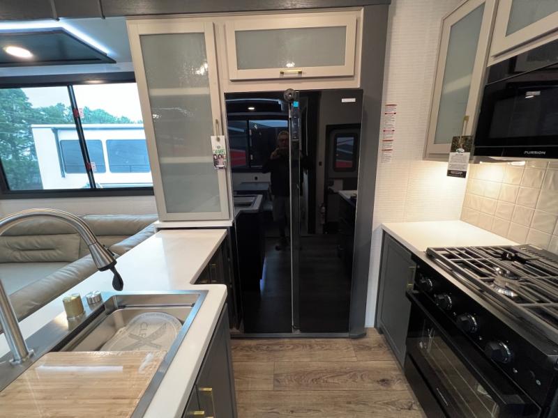 The outdoor enthusiasts has met their match with the XLR Nitro toy haulers by Forest River. The vacuum-bonded aluminum framed sidewalls, gel-coat fiberglass exterior, and singular roof membrane are just a few durable construction materials you will find on these models. There is a weatherproof insulated ramp door, 5,000 lb. cargo tie-downs, a 40 gallon fuel station, and more convenient garage features that will make camping with toys easier than ever. You'll appreciate smooth towing thanks to the MORryde CRE3000 suspension enhancement and 16" Goodyear Endurance tires. A 200 watt roof-mounted solar panel also comes standard, along with electric awning(s) with LED lights, undercarriage lighting, and friction hinge entry door(s). Some of the innovative technology features include a Winegard Air 360 antenna with WiFi prep and 4G LTE, convenient USB charging stations, and a Gear Guardian wireless camera for inside the garage to help keep your gear secure. You will also find diamonds solid surface kitchen countertops, Luna Quartz bathroom countertops, hardwood cabinet doors, stylish window trim package, and many more interior comforts.