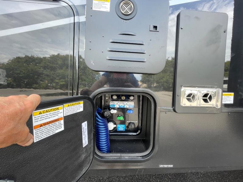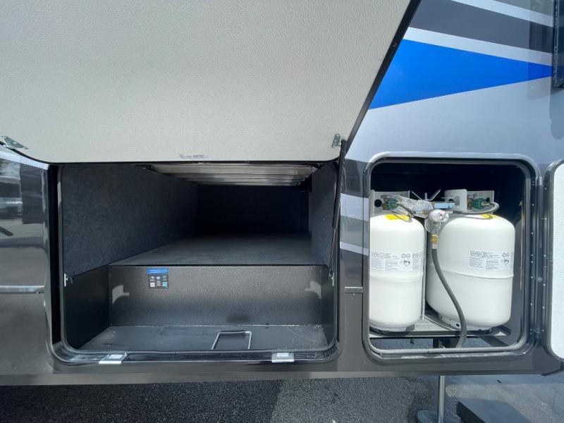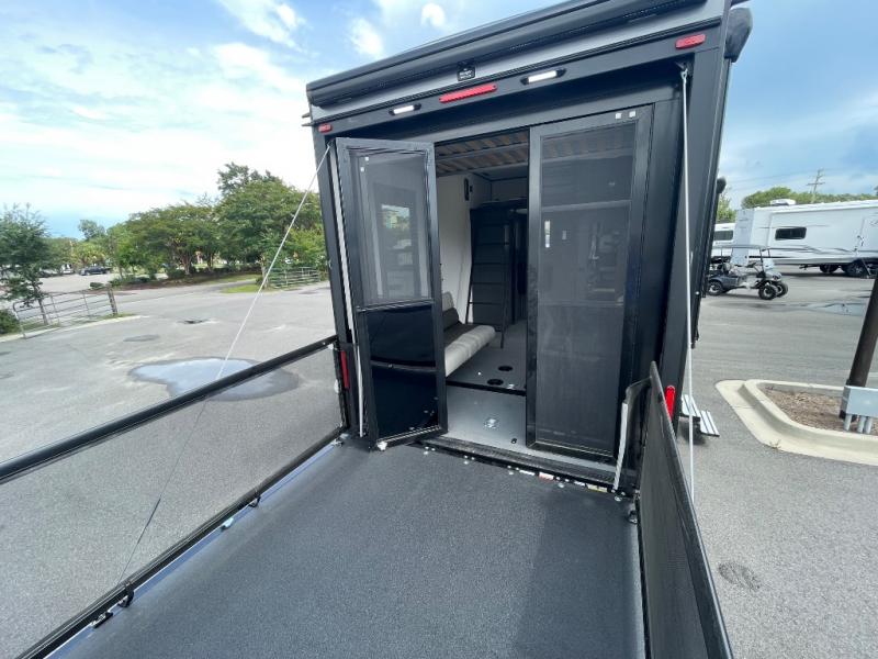 The outdoor enthusiasts has met their match with the XLR Nitro toy haulers by Forest River. The vacuum-bonded aluminum framed sidewalls, gel-coat fiberglass exterior, and singular roof membrane are just a few durable construction materials you will find on these models. There is a weatherproof insulated ramp door, 5,000 lb. cargo tie-downs, a 40 gallon fuel station, and more convenient garage features that will make camping with toys easier than ever. You'll appreciate smooth towing thanks to the MORryde CRE3000 suspension enhancement and 16" Goodyear Endurance tires. A 200 watt roof-mounted solar panel also comes standard, along with electric awning(s) with LED lights, undercarriage lighting, and friction hinge entry door(s). Some of the innovative technology features include a Winegard Air 360 antenna with WiFi prep and 4G LTE, convenient USB charging stations, and a Gear Guardian wireless camera for inside the garage to help keep your gear secure. You will also find diamonds solid surface kitchen countertops, Luna Quartz bathroom countertops, hardwood cabinet doors, stylish window trim package, and many more interior comforts.