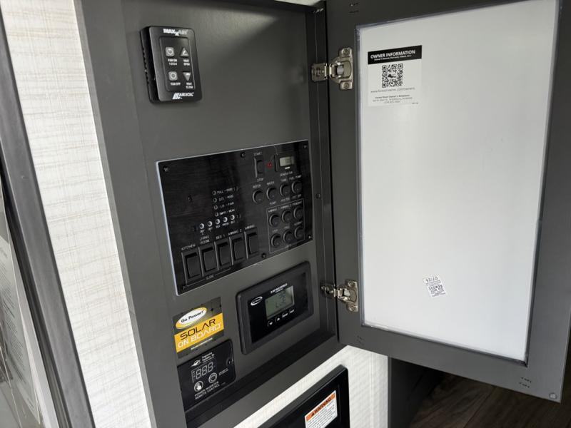 The outdoor enthusiasts have met their match with the XLR Nitro toy haulers by Forest River. The vacuum-bonded aluminum framed sidewalls, high gloss fiberglass exterior, and one-piece roof membrane are just a few durable construction materials you will find on these models. There is a weatherproof insulated ramp door, 5,000 lb. cargo tie-downs, a 40 gallon fuel station, and more convenient garage features that will make camping with toys easier than ever. You'll appreciate smooth towing thanks to the MORryde CRE3000 suspension enhancement and 16" Goodyear Endurance tires. A 200 watt roof-mounted solar panel, along with electric awning(s) with LED lights, undercarriage lighting, and friction hinge entry door(s). Some of the innovative technology features include a Winegard Air 360 antenna with WiFi prep and 4G LTE, convenient USB charging stations. You will also find diamond solid surface kitchen countertops, residential tile backsplash, hardwood cabinet doors, hardwood window trim package, and many more interior comforts.