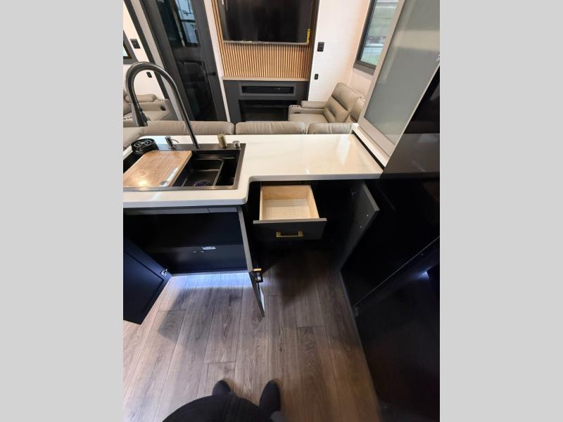 The outdoor enthusiasts have met their match with the XLR Nitro toy haulers by Forest River. The vacuum-bonded aluminum framed sidewalls, high gloss fiberglass exterior, and one-piece roof membrane are just a few durable construction materials you will find on these models. There is a weatherproof insulated ramp door, 5,000 lb. cargo tie-downs, a 40 gallon fuel station, and more convenient garage features that will make camping with toys easier than ever. You'll appreciate smooth towing thanks to the MORryde CRE3000 suspension enhancement and 16" Goodyear Endurance tires. A 200 watt roof-mounted solar panel, along with electric awning(s) with LED lights, undercarriage lighting, and friction hinge entry door(s). Some of the innovative technology features include a Winegard Air 360 antenna with WiFi prep and 4G LTE, convenient USB charging stations. You will also find diamond solid surface kitchen countertops, residential tile backsplash, hardwood cabinet doors, hardwood window trim package, and many more interior comforts.