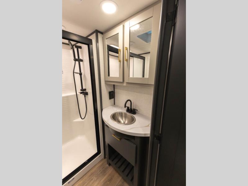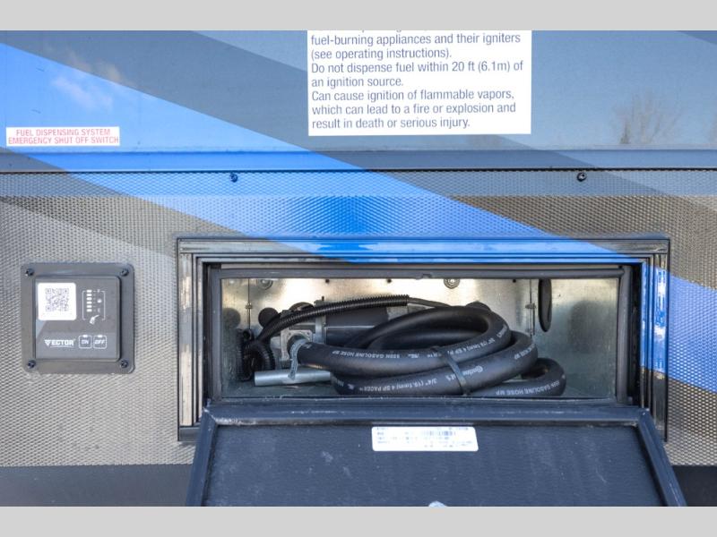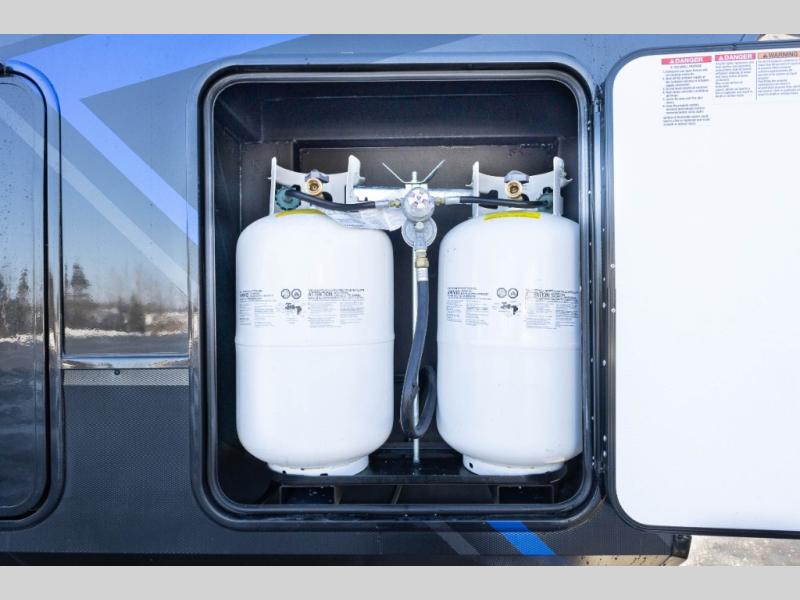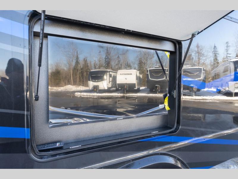 The outdoor enthusiasts have met their match with the XLR Nitro toy haulers by Forest River. The vacuum-bonded aluminum framed sidewalls, high gloss fiberglass exterior, and one-piece roof membrane are just a few durable construction materials you will find on these models. There is a weatherproof insulated ramp door, 5,000 lb. cargo tie-downs, a 40 gallon fuel station, and more convenient garage features that will make camping with toys easier than ever. You'll appreciate smooth towing thanks to the MORryde CRE3000 suspension enhancement and 16" Goodyear Endurance tires. A 200 watt roof-mounted solar panel, along with electric awning(s) with LED lights, undercarriage lighting, and friction hinge entry door(s). Some of the innovative technology features include a Winegard Air 360 antenna with WiFi prep and 4G LTE, convenient USB charging stations. You will also find diamond solid surface kitchen countertops, residential tile backsplash, hardwood cabinet doors, hardwood window trim package, and many more interior comforts.