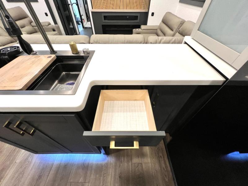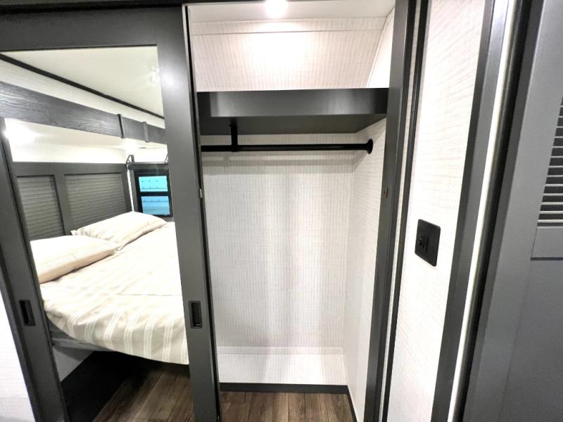 The outdoor enthusiasts have met their match with the XLR Nitro toy haulers by Forest River. The vacuum-bonded aluminum framed sidewalls, high gloss fiberglass exterior, and one-piece roof membrane are just a few durable construction materials you will find on these models. There is a weatherproof insulated ramp door, 5,000 lb. cargo tie-downs, a 40 gallon fuel station, and more convenient garage features that will make camping with toys easier than ever. You'll appreciate smooth towing thanks to the MORryde CRE3000 suspension enhancement and 16" Goodyear Endurance tires. A 200 watt roof-mounted solar panel, along with electric awning(s) with LED lights, undercarriage lighting, and friction hinge entry door(s). Some of the innovative technology features include a Winegard Air 360 antenna with WiFi prep and 4G LTE, convenient USB charging stations. You will also find diamond solid surface kitchen countertops, residential tile backsplash, hardwood cabinet doors, hardwood window trim package, and many more interior comforts.