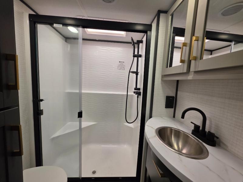The outdoor enthusiasts have met their match with the XLR Nitro toy haulers by Forest River. The vacuum-bonded aluminum framed sidewalls, high gloss fiberglass exterior, and one-piece roof membrane are just a few durable construction materials you will find on these models. There is a weatherproof insulated ramp door, 5,000 lb. cargo tie-downs, a 40 gallon fuel station, and more convenient garage features that will make camping with toys easier than ever. You'll appreciate smooth towing thanks to the MORryde CRE3000 suspension enhancement and 16" Goodyear Endurance tires. A 200 watt roof-mounted solar panel, along with electric awning(s) with LED lights, undercarriage lighting, and friction hinge entry door(s). Some of the innovative technology features include a Winegard Air 360 antenna with WiFi prep and 4G LTE, convenient USB charging stations. You will also find diamond solid surface kitchen countertops, residential tile backsplash, hardwood cabinet doors, hardwood window trim package, and many more interior comforts.