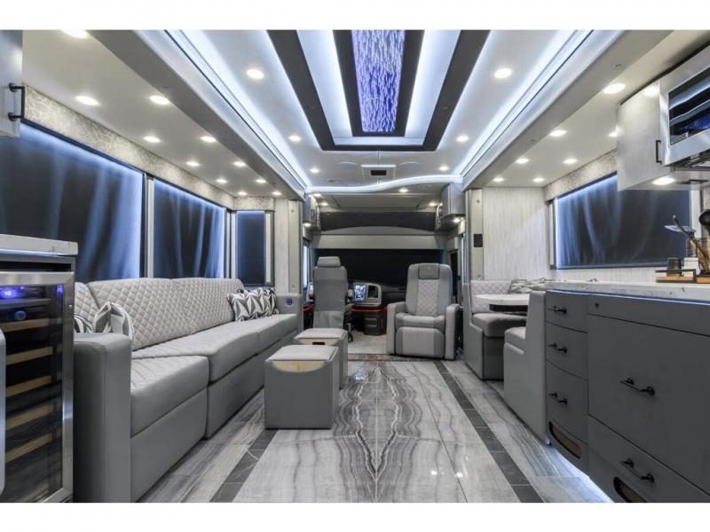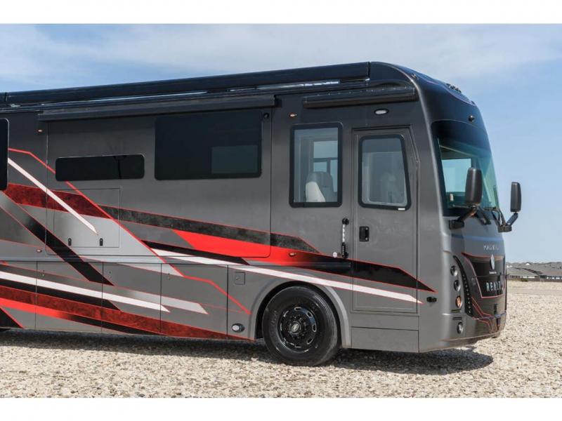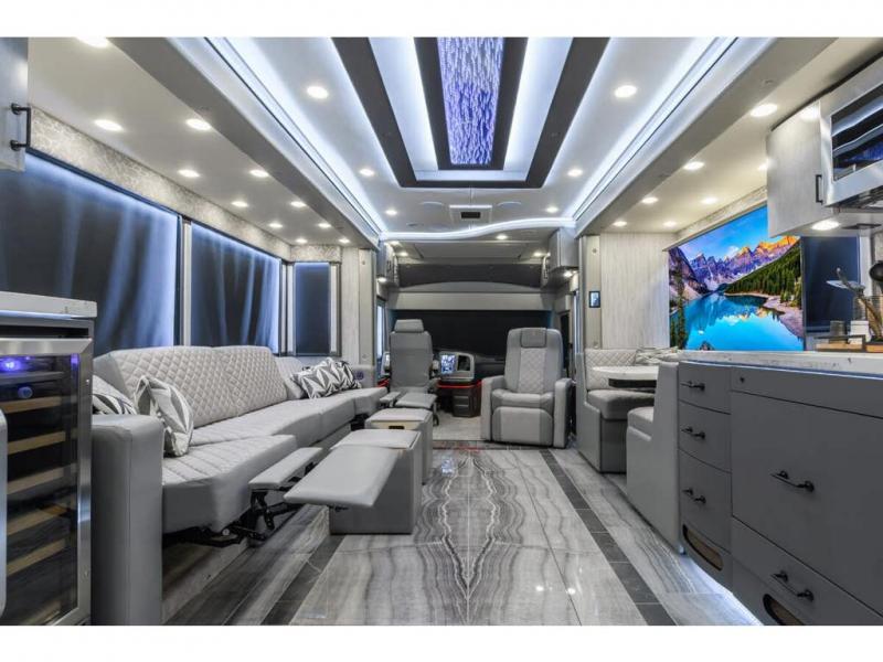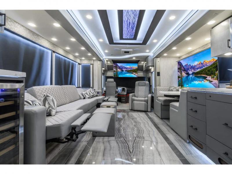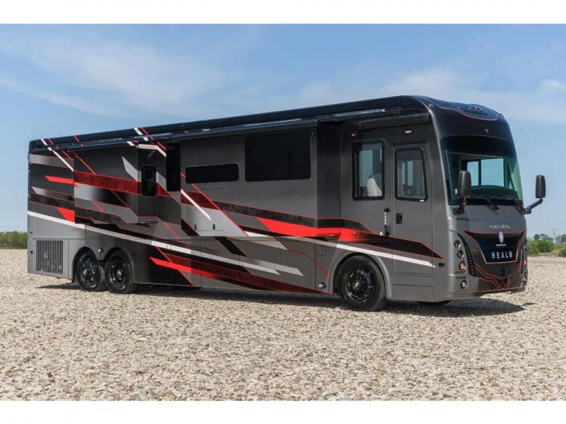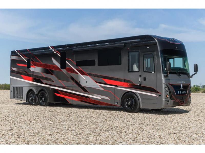 M.S.R.P. $1,803,910 - The 2026 Foretravel Realm Presidential takes the luxury motor coach market to all new heights and further propels the legacy of Foretravel. The Foretravel Realm stands alone as the finest motor coach of its kind available on the market today. It rides on Spartan's Premier K4 chassis, that is exclusive to Foretravel, offering incomparable ride, handling, and safety. This extraordinary motor coach is the Luxury Villa 2 (LV2) floor plan with the incomparable Aristocracy interior décor package that is paired perfectly with the all-new Catapult exterior paint scheme that can only be found on the Realm Presidential Series. Shop a huge selection of luxury diesel pusher motorhomes all at 1 location! Choose from American Coach Eagle – Dream – Entegra Coach Cornerstone – Anthem – Aspire – Fleetwood Palisade – Discovery LXE – Holiday Rambler Armada – Foretravel Realm – Foretravel Realm Presidential and more. We also buy and sell quality pre-owned models such Newmar King Aire – Essex – London Aire – Mountain Aire – Dutch Star - Tiffin Zephyr – Allegro Bus – Phaeton – Prevost Liberty Lady – Millennium - Marathon – Newell and much more. Visit MHSRV.com for our complete line-up and the sale prices that have made us the #1 volume selling motor home dealership in the world 12 years in a row! The LV2 is highlighted by a massive power lift living room TV; a stack washer/dryer; a luxurious master bedroom with a Slumber Ease motorized luxury king size mattress and power lift LED TV; and an incredible, residential designed master bath with huge custom tile shower, beautiful sink basins, large pull-out medicine cabinet, private water closet, and large master linen & wardrobe closet. You will also find a true flat floor design throughout the Realm Presidential Series including, not only Foretravel's premium flat floor slide-out rooms but also the bedroom to master bath transition. The Presidential Series also boasts a 600D Aqua Hot Hydronic Heating system. You will find the premier Valid digital dash with VDC control, along with the Valid air ride suspension, electronic suspension control with self-leveling feature, driver and passenger coach monitors, tire pressure sensors, beautiful full tile floors and back-splashes, ultra-high-end quartz counter tops throughout, premium brand refrigerator and convection microwave, LED accent lighting throughout, a beautiful curved entry way step, Executive entrance steps, a designer entry door with LED accent lighting, 4K QLED TVs where applicable, upgraded cab stereo and sub-woofer, heated and cooled leather pilot and co-pilot seats, recessed and upgraded ceiling features in the galley and bedroom, recessed cook top, an 8-camera system including 6 perimeter 360 Delta Mobile cameras for the ultimate in coach visibility, dual integrated power awnings, power entry door awning, exterior entertainment center, (2) electric sliding cargo trays, exterior freezer, full coach and multi-color LED ground effect lighting package, unmistakable full body paint exterior with Armor-Coat sprayed protection below windshield, chrome grill and accent package, (2) 3000 watt inverters, Gold Heat floor tile heating system, solar panel package, dishwasher drawer, 5.1 surround sound in living room and StarLink antenna. The Spartan K4 chassis is not only massive in stature but boasts a best-in-class Independent Front Suspension system, a passive steering rear tag axle for incomparable handling and maneuverability as well as the Performance Choice® anti-roll bar with selectable drive modes, and automatic traction control. You will know instantly, once behind the wheel of a Realm, that this chassis is truly a cut above all other luxury motor coach chassis. It is powered by a Cummins 605HP diesel. You will also find additional advanced safety features on a Realm like a fire suppression system for the engine, Tyron Bead-Lock wheel safety bands, and steel construction rather than aluminum found in the competition. You will also enjoy the ultimate in slide-out room fit and finish. These slides are undoubtedly head and shoulders above the competition. They feature pneumatic seals that provide a literal airtight seal completely around the entire slide-out room regardless of slide position for the premium in fit, finish, and function. They also feature a power drop-down flooring system that gives the Realm not only a flat-floor when extended, but a true flat-floor when retracted as well. (No uneven floor surfaces, damaging rollers, poorly sealed rubber gaskets, etc.) The Realm also features a flat floor bedroom to master bath transition. You won't find that in the competition; Nor will you find a *3-YEAR or 50K MILE SPARTAN NO-COST MAINTENANCE PLAN INCLUDED - (A Realm Exclusive) and a *2-YEAR or 24K MILE LIMITED WARRANTY. For more details contact Motor Home Specialist today. REALM, by definition, is a royal kingdom; a domain within which anything may occur, prevail, or dominate. The Realm of Dreams is here and available at Motor Home Specialist, the #1 Volume Selling Motor Home Dealership in the World. Visit MHSRV.com or call 800-335-6054 for complete details, photos, videos, brochures, and more. The Foretravel Realm Presidential Series... Your Kingdom Awaits.