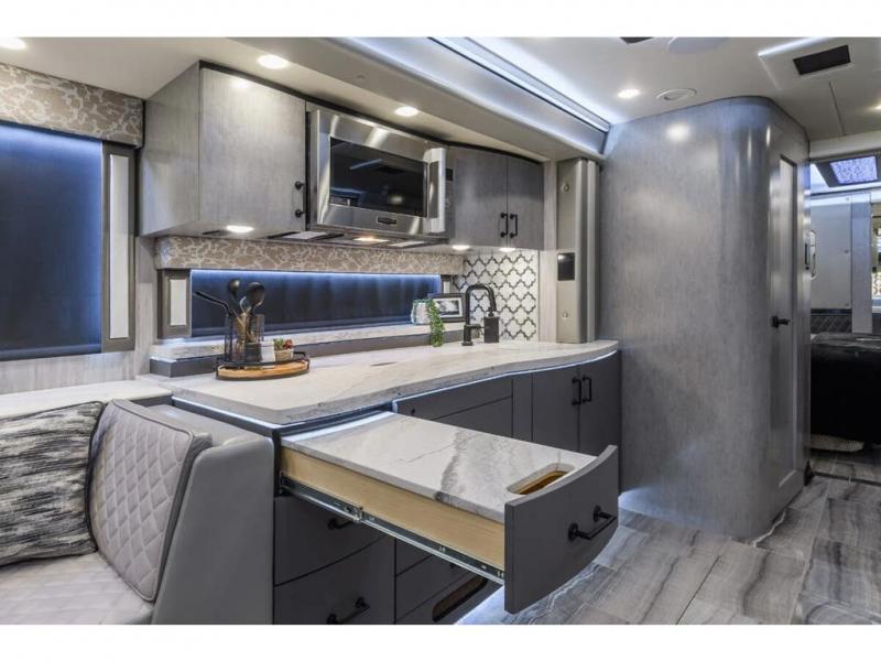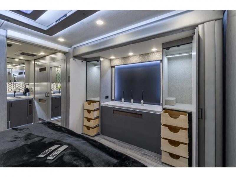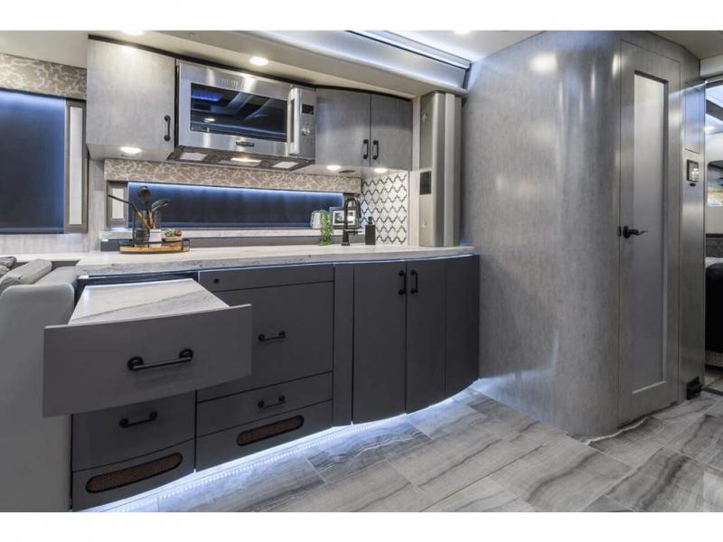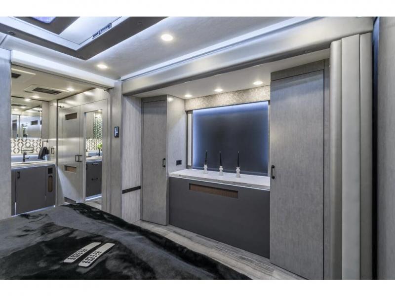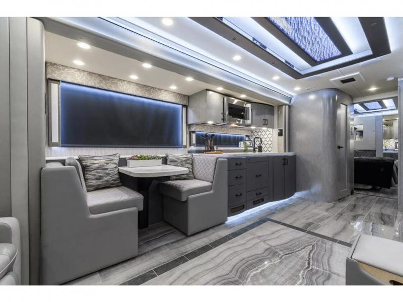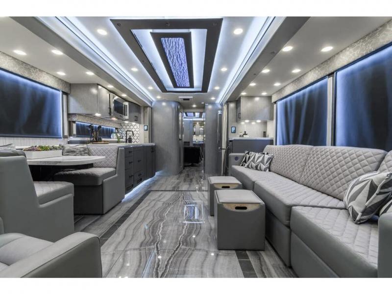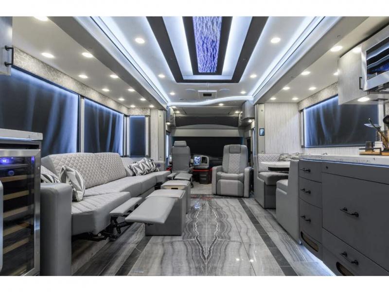 M.S.R.P. $1,803,910 - The 2026 Foretravel Realm Presidential takes the luxury motor coach market to all new heights and further propels the legacy of Foretravel. The Foretravel Realm stands alone as the finest motor coach of its kind available on the market today. It rides on Spartan's Premier K4 chassis, that is exclusive to Foretravel, offering incomparable ride, handling, and safety. This extraordinary motor coach is the Luxury Villa 2 (LV2) floor plan with the incomparable Aristocracy interior décor package that is paired perfectly with the all-new Catapult exterior paint scheme that can only be found on the Realm Presidential Series. Shop a huge selection of luxury diesel pusher motorhomes all at 1 location! Choose from American Coach Eagle – Dream – Entegra Coach Cornerstone – Anthem – Aspire – Fleetwood Palisade – Discovery LXE – Holiday Rambler Armada – Foretravel Realm – Foretravel Realm Presidential and more. We also buy and sell quality pre-owned models such Newmar King Aire – Essex – London Aire – Mountain Aire – Dutch Star - Tiffin Zephyr – Allegro Bus – Phaeton – Prevost Liberty Lady – Millennium - Marathon – Newell and much more. Visit MHSRV.com for our complete line-up and the sale prices that have made us the #1 volume selling motor home dealership in the world 12 years in a row! The LV2 is highlighted by a massive power lift living room TV; a stack washer/dryer; a luxurious master bedroom with a Slumber Ease motorized luxury king size mattress and power lift LED TV; and an incredible, residential designed master bath with huge custom tile shower, beautiful sink basins, large pull-out medicine cabinet, private water closet, and large master linen & wardrobe closet. You will also find a true flat floor design throughout the Realm Presidential Series including, not only Foretravel's premium flat floor slide-out rooms but also the bedroom to master bath transition. The Presidential Series also boasts a 600D Aqua Hot Hydronic Heating system. You will find the premier Valid digital dash with VDC control, along with the Valid air ride suspension, electronic suspension control with self-leveling feature, driver and passenger coach monitors, tire pressure sensors, beautiful full tile floors and back-splashes, ultra-high-end quartz counter tops throughout, premium brand refrigerator and convection microwave, LED accent lighting throughout, a beautiful curved entry way step, Executive entrance steps, a designer entry door with LED accent lighting, 4K QLED TVs where applicable, upgraded cab stereo and sub-woofer, heated and cooled leather pilot and co-pilot seats, recessed and upgraded ceiling features in the galley and bedroom, recessed cook top, an 8-camera system including 6 perimeter 360 Delta Mobile cameras for the ultimate in coach visibility, dual integrated power awnings, power entry door awning, exterior entertainment center, (2) electric sliding cargo trays, exterior freezer, full coach and multi-color LED ground effect lighting package, unmistakable full body paint exterior with Armor-Coat sprayed protection below windshield, chrome grill and accent package, (2) 3000 watt inverters, Gold Heat floor tile heating system, solar panel package, dishwasher drawer, 5.1 surround sound in living room and StarLink antenna. The Spartan K4 chassis is not only massive in stature but boasts a best-in-class Independent Front Suspension system, a passive steering rear tag axle for incomparable handling and maneuverability as well as the Performance Choice® anti-roll bar with selectable drive modes, and automatic traction control. You will know instantly, once behind the wheel of a Realm, that this chassis is truly a cut above all other luxury motor coach chassis. It is powered by a Cummins 605HP diesel. You will also find additional advanced safety features on a Realm like a fire suppression system for the engine, Tyron Bead-Lock wheel safety bands, and steel construction rather than aluminum found in the competition. You will also enjoy the ultimate in slide-out room fit and finish. These slides are undoubtedly head and shoulders above the competition. They feature pneumatic seals that provide a literal airtight seal completely around the entire slide-out room regardless of slide position for the premium in fit, finish, and function. They also feature a power drop-down flooring system that gives the Realm not only a flat-floor when extended, but a true flat-floor when retracted as well. (No uneven floor surfaces, damaging rollers, poorly sealed rubber gaskets, etc.) The Realm also features a flat floor bedroom to master bath transition. You won't find that in the competition; Nor will you find a *3-YEAR or 50K MILE SPARTAN NO-COST MAINTENANCE PLAN INCLUDED - (A Realm Exclusive) and a *2-YEAR or 24K MILE LIMITED WARRANTY. For more details contact Motor Home Specialist today. REALM, by definition, is a royal kingdom; a domain within which anything may occur, prevail, or dominate. The Realm of Dreams is here and available at Motor Home Specialist, the #1 Volume Selling Motor Home Dealership in the World. Visit MHSRV.com or call 800-335-6054 for complete details, photos, videos, brochures, and more. The Foretravel Realm Presidential Series... Your Kingdom Awaits.