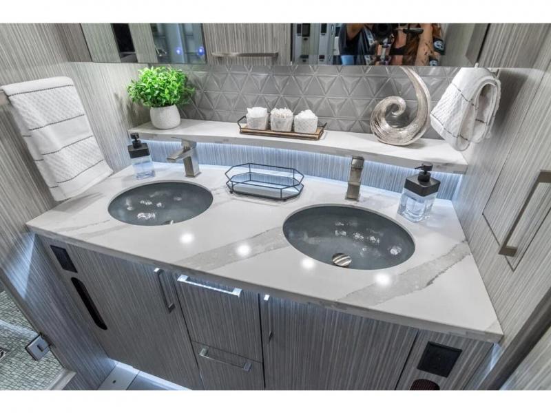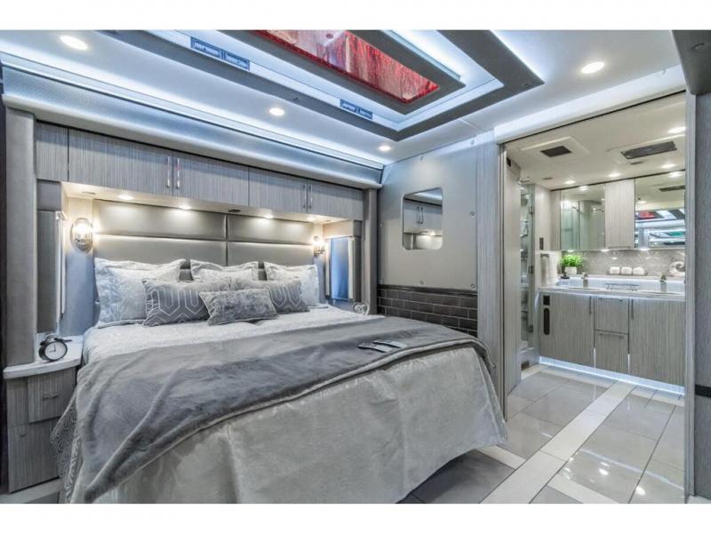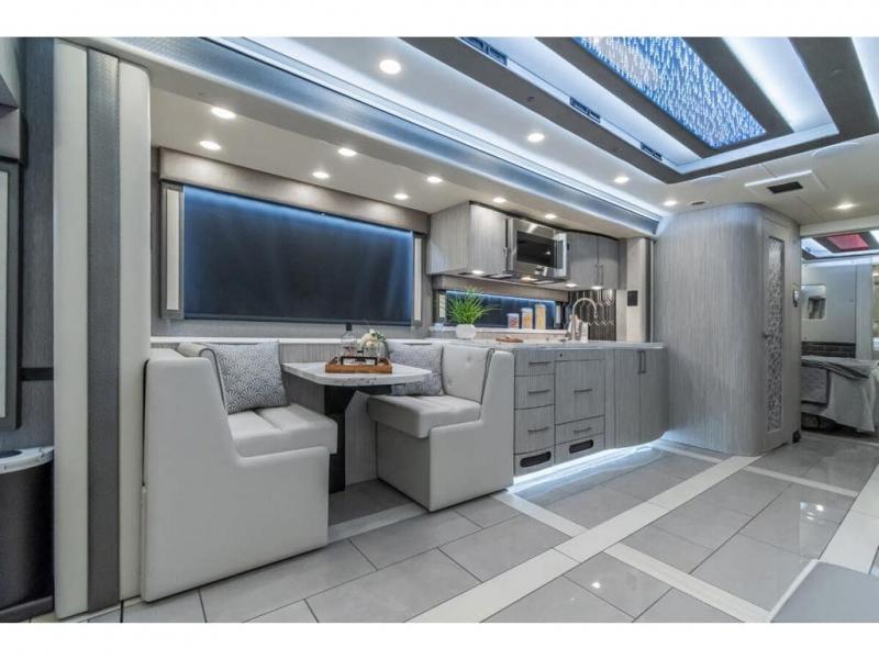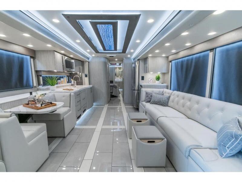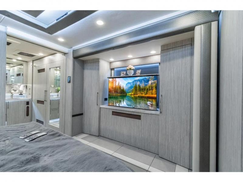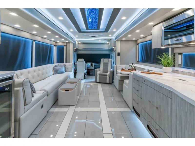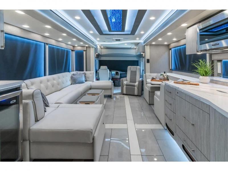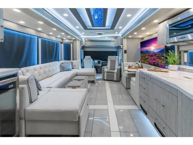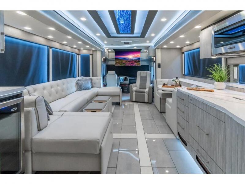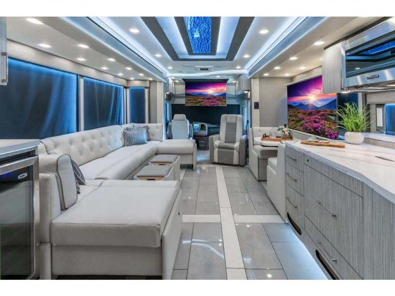 M.S.R.P. $1,756,740 - The 2026 Foretravel Realm Presidential takes the luxury motor coach market to all new heights and further propels the legacy of Foretravel. The Foretravel Realm stands alone as the finest motor coach of its kind available on the market today. It rides on Spartan's Premier K4 chassis, that is exclusive to Foretravel, offering incomparable ride, handling, and safety. This extraordinary motor coach is the Luxury Villa 2 (LV2) floor plan with the incomparable Majesty interior décor package that is paired perfectly with the all-new Ironside exterior paint scheme that can only be found on the Realm Presidential Series. Shop a huge selection of luxury diesel pusher motorhomes all at 1 location! Choose from American Coach Eagle – Dream – Entegra Coach Cornerstone – Anthem – Aspire – Fleetwood Palisade – Discovery LXE – Holiday Rambler Armada – Foretravel Realm – Foretravel Realm Presidential and more. We also buy and sell quality pre-owned models such Newmar King Aire – Essex – London Aire – Mountain Aire – Dutch Star - Tiffin Zephyr – Allegro Bus – Phaeton – Prevost Liberty Lady – Millennium - Marathon – Newell and much more. Visit MHSRV.com for our complete line-up and the sale prices that have made us the #1 volume selling motor home dealership in the world 12 years in a row! The LV2 is highlighted by a massive power lift living room TV; a stack washer/dryer; a luxurious master bedroom with a Slumber Ease motorized luxury king size mattress and power lift LED TV; and an incredible, residential designed master bath with huge custom tile shower, beautiful sink basins, large pull-out medicine cabinet, private water closet, and large master linen & wardrobe closet. You will also find a true flat floor design throughout the Realm Presidential Series including, not only Foretravel's premium flat floor slide-out rooms but also the bedroom to master bath transition. The Presidential Series also boasts a 600D Aqua Hot Hydronic Heating system. You will find the premier Valid digital dash with VDC control, along with the Valid air ride suspension, electronic suspension control with self-leveling feature, driver and passenger coach monitors, tire pressure sensors, beautiful full tile floors and back-splashes, ultra-high-end quartz counter tops throughout, premium brand refrigerator and convection microwave, LED accent lighting throughout, a beautiful curved entry way step, Executive entrance steps, a designer entry door with LED accent lighting, 4K QLED TVs where applicable, upgraded cab stereo and sub-woofer, heated and cooled leather pilot and co-pilot seats, recessed and upgraded ceiling features in the galley and bedroom, recessed cook top, an 8-camera system including 6 perimeter 360 Delta Mobile cameras for the ultimate in coach visibility, dual integrated power awnings, power entry door awning, exterior entertainment center, (2) electric sliding cargo trays, exterior freezer, full coach and multi-color LED ground effect lighting package, unmistakable full body paint exterior with Armor-Coat sprayed protection below windshield, chrome grill and accent package, (2) 3000 watt inverters, Gold Heat floor tile heating system, solar panel package, dishwasher drawer, 5.1 surround sound in living room and StarLink antenna. The Spartan K4 chassis is not only massive in stature but boasts a best-in-class Independent Front Suspension system, a passive steering rear tag axle for incomparable handling and maneuverability as well as the Performance Choice® anti-roll bar with selectable drive modes, and automatic traction control. You will know instantly, once behind the wheel of a Realm, that this chassis is truly a cut above all other luxury motor coach chassis. It is powered by a Cummins 605HP diesel. You will also find additional advanced safety features on a Realm like a fire suppression system for the engine, Tyron Bead-Lock wheel safety bands, and steel construction rather than aluminum found in the competition. You will also enjoy the ultimate in slide-out room fit and finish. These slides are undoubtedly head and shoulders above the competition. They feature pneumatic seals that provide a literal airtight seal completely around the entire slide-out room regardless of slide position for the premium in fit, finish, and function. They also feature a power drop-down flooring system that gives the Realm not only a flat-floor when extended, but a true flat-floor when retracted as well. (No uneven floor surfaces, damaging rollers, poorly sealed rubber gaskets, etc.) The Realm also features a flat floor bedroom to master bath transition. You won't find that in the competition; Nor will you find a *3-YEAR or 50K MILE SPARTAN NO-COST MAINTENANCE PLAN INCLUDED - (A Realm Exclusive) and a *2-YEAR or 24K MILE LIMITED WARRANTY. For more details contact Motor Home Specialist today. REALM, by definition, is a royal kingdom; a domain within which anything may occur, prevail, or dominate. The Realm of Dreams is here and available at Motor Home Specialist, the #1 Volume Selling Motor Home Dealership in the World. Visit MHSRV.com or call 800-335-6054 for complete details, photos, videos, brochures, and more. The Foretravel Realm Presidential Series... Your Kingdom Awaits.