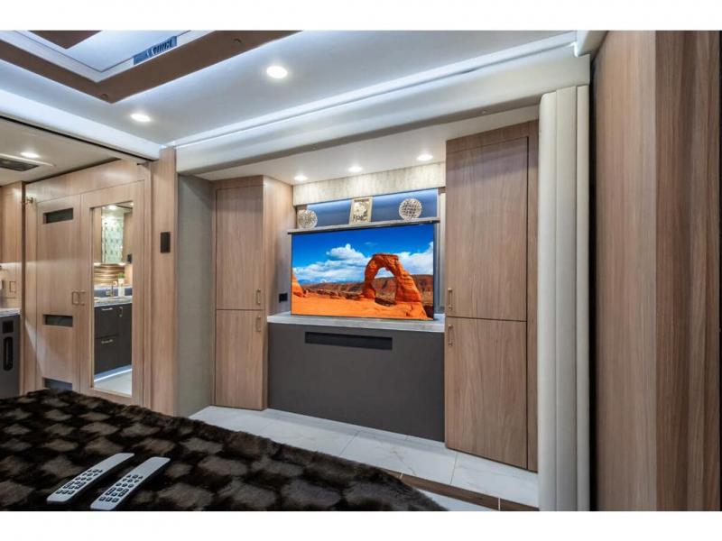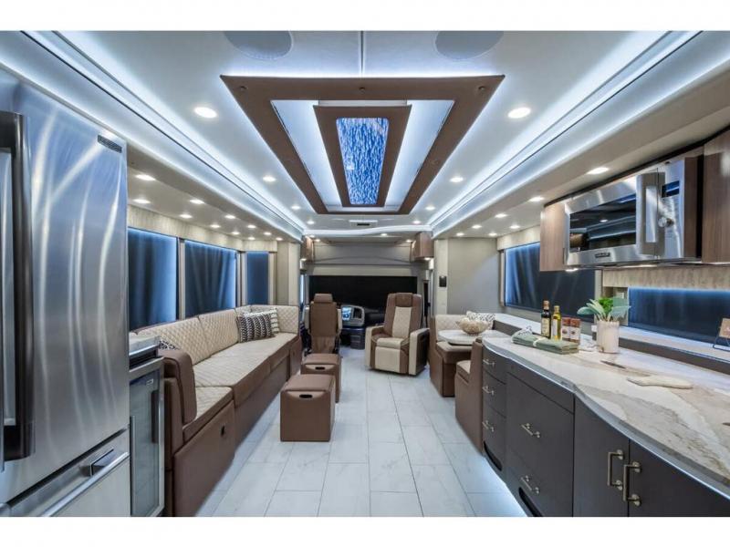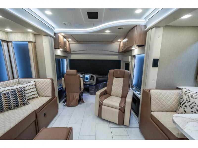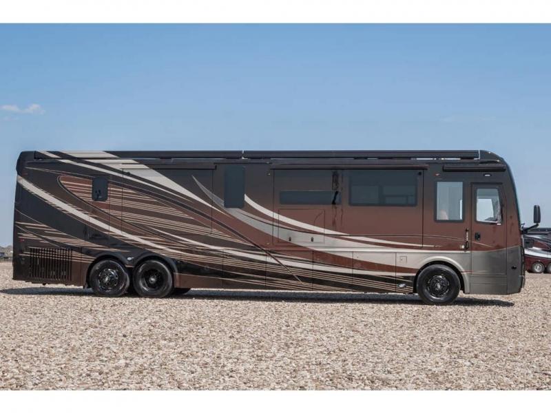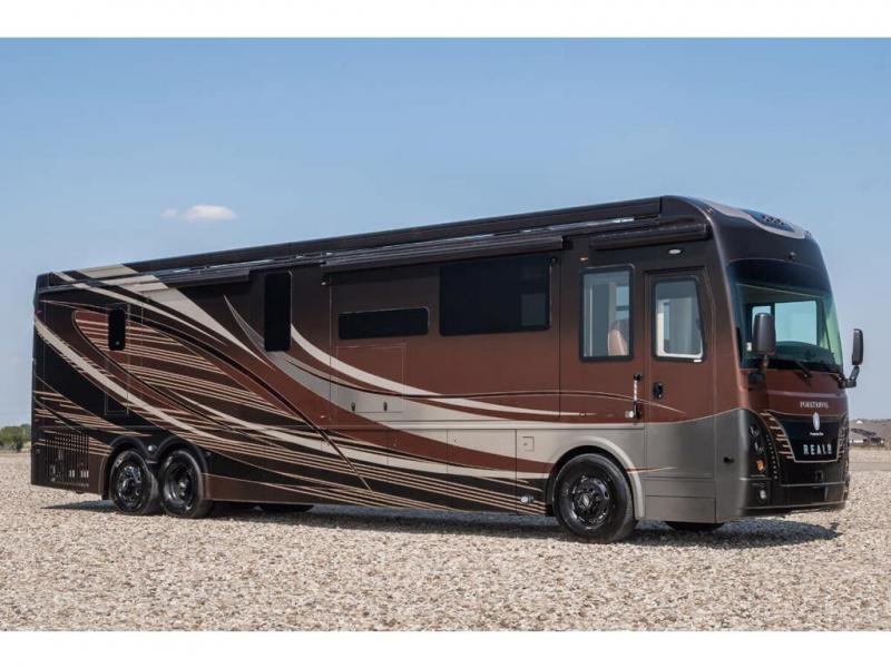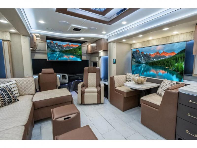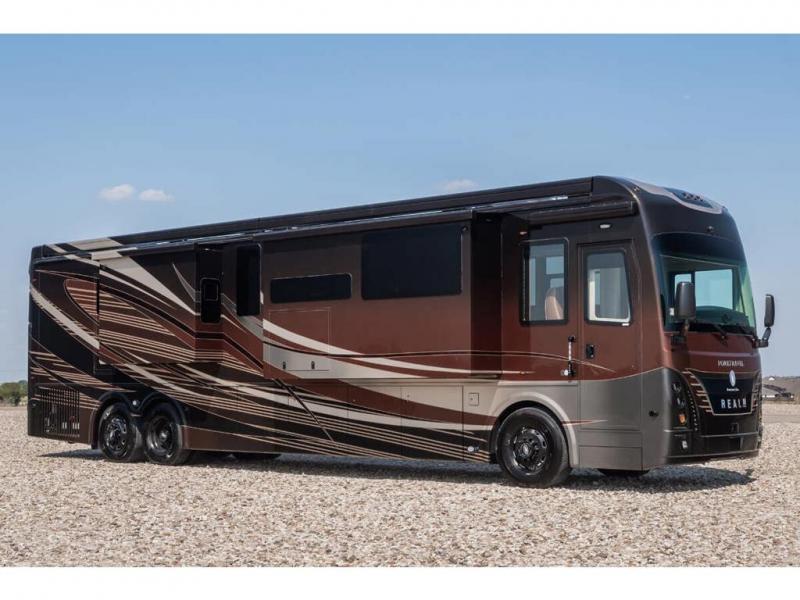 M.S.R.P. $1,756,740 - The 2026 Foretravel Realm Presidential takes the luxury motor coach market to all new heights and further propels the legacy of Foretravel. The Foretravel Realm stands alone as the finest motor coach of its kind available on the market today. It rides on Spartan's Premier K4 chassis, that is exclusive to Foretravel, offering incomparable ride, handling, and safety. This extraordinary motor coach is the Luxury Villa 2 (LV2) floor plan with the incomparable Sovereign interior décor package that is paired perfectly with the all-new Sceptre exterior paint scheme that can only be found on the Realm Presidential Series. Shop a huge selection of luxury diesel pusher motorhomes all at 1 location! Choose from American Coach Eagle – Dream – Entegra Coach Cornerstone – Anthem – Aspire – Fleetwood Palisade – Discovery LXE – Holiday Rambler Armada – Foretravel Realm – Foretravel Realm Presidential and more. We also buy and sell quality pre-owned models such Newmar King Aire – Essex – London Aire – Mountain Aire – Dutch Star - Tiffin Zephyr – Allegro Bus – Phaeton – Prevost Liberty Lady – Millennium - Marathon – Newell and much more. Visit MHSRV.com for our complete line-up and the sale prices that have made us the #1 volume selling motor home dealership in the world 12 years in a row! The LV2 is highlighted by a massive power lift living room TV; a stack washer/dryer; a luxurious master bedroom with a Slumber Ease motorized luxury king size mattress and power lift LED TV; and an incredible, residential designed master bath with huge custom tile shower, beautiful sink basins, large pull-out medicine cabinet, private water closet, and large master linen & wardrobe closet. You will also find a true flat floor design throughout the Realm Presidential Series including, not only Foretravel's premium flat floor slide-out rooms but also the bedroom to master bath transition. The Presidential Series also boasts a 600D Aqua Hot Hydronic Heating system. You will find the premier Valid digital dash with VDC control, along with the Valid air ride suspension, electronic suspension control with self-leveling feature, driver and passenger coach monitors, tire pressure sensors, beautiful full tile floors and back-splashes, ultra-high-end quartz counter tops throughout, premium brand refrigerator and convection microwave, LED accent lighting throughout, a beautiful curved entry way step, Executive entrance steps, a designer entry door with LED accent lighting, 4K QLED TVs where applicable, upgraded cab stereo and sub-woofer, heated and cooled leather pilot and co-pilot seats, recessed and upgraded ceiling features in the galley and bedroom, recessed cook top, an 8-camera system including 6 perimeter 360 Delta Mobile cameras for the ultimate in coach visibility, dual integrated power awnings, power entry door awning, exterior entertainment center, (2) electric sliding cargo trays, exterior freezer, full coach and multi-color LED ground effect lighting package, unmistakable full body paint exterior with Armor-Coat sprayed protection below windshield, chrome grill and accent package, (2) 3000 watt inverters, Gold Heat floor tile heating system, solar panel package, dishwasher drawer, 5.1 surround sound in living room and StarLink antenna. The Spartan K4 chassis is not only massive in stature but boasts a best-in-class Independent Front Suspension system, a passive steering rear tag axle for incomparable handling and maneuverability as well as the Performance Choice® anti-roll bar with selectable drive modes, and automatic traction control. You will know instantly, once behind the wheel of a Realm, that this chassis is truly a cut above all other luxury motor coach chassis. It is powered by a Cummins 605HP diesel. You will also find additional advanced safety features on a Realm like a fire suppression system for the engine, Tyron Bead-Lock wheel safety bands, and steel construction rather than aluminum found in the competition. You will also enjoy the ultimate in slide-out room fit and finish. These slides are undoubtedly head and shoulders above the competition. They feature pneumatic seals that provide a literal airtight seal completely around the entire slide-out room regardless of slide position for the premium in fit, finish, and function. They also feature a power drop-down flooring system that gives the Realm not only a flat-floor when extended, but a true flat-floor when retracted as well. (No uneven floor surfaces, damaging rollers, poorly sealed rubber gaskets, etc.) The Realm also features a flat floor bedroom to master bath transition. You won't find that in the competition; Nor will you find a *3-YEAR or 50K MILE SPARTAN NO-COST MAINTENANCE PLAN INCLUDED - (A Realm Exclusive) and a *2-YEAR or 24K MILE LIMITED WARRANTY. For more details contact Motor Home Specialist today. REALM, by definition, is a royal kingdom; a domain within which anything may occur, prevail, or dominate. The Realm of Dreams is here and available at Motor Home Specialist, the #1 Volume Selling Motor Home Dealership in the World. Visit MHSRV.com or call 800-335-6054 for complete details, photos, videos, brochures, and more. The Foretravel Realm Presidential Series... Your Kingdom Awaits.
