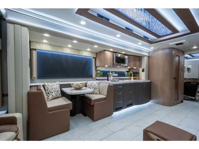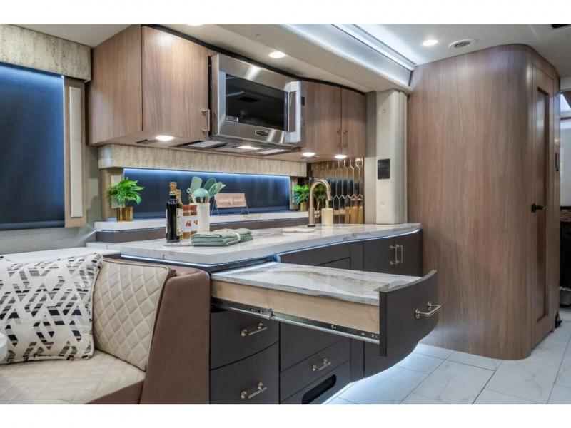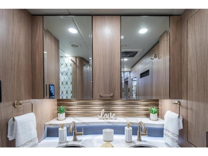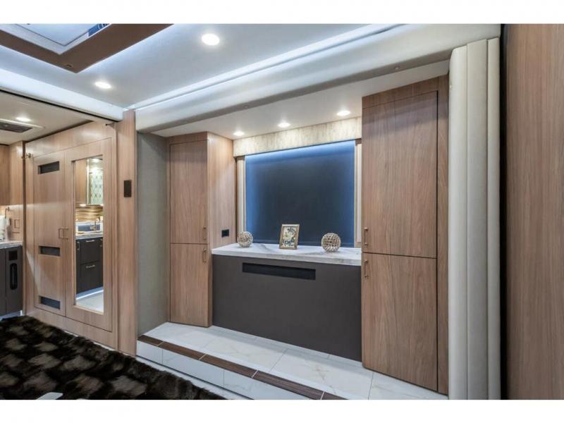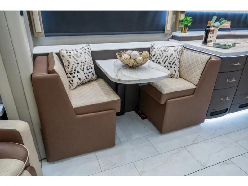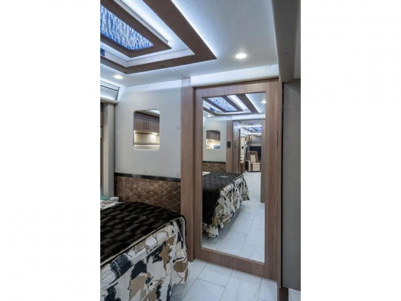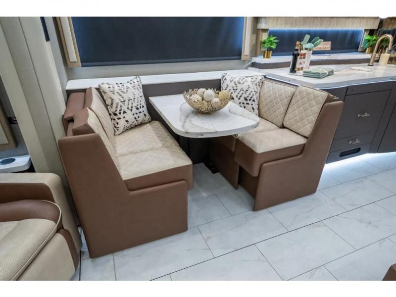 M.S.R.P. $1,756,740 - The 2026 Foretravel Realm Presidential takes the luxury motor coach market to all new heights and further propels the legacy of Foretravel. The Foretravel Realm stands alone as the finest motor coach of its kind available on the market today. It rides on Spartan's Premier K4 chassis, that is exclusive to Foretravel, offering incomparable ride, handling, and safety. This extraordinary motor coach is the Luxury Villa 2 (LV2) floor plan with the incomparable Sovereign interior décor package that is paired perfectly with the all-new Sceptre exterior paint scheme that can only be found on the Realm Presidential Series. Shop a huge selection of luxury diesel pusher motorhomes all at 1 location! Choose from American Coach Eagle – Dream – Entegra Coach Cornerstone – Anthem – Aspire – Fleetwood Palisade – Discovery LXE – Holiday Rambler Armada – Foretravel Realm – Foretravel Realm Presidential and more. We also buy and sell quality pre-owned models such Newmar King Aire – Essex – London Aire – Mountain Aire – Dutch Star - Tiffin Zephyr – Allegro Bus – Phaeton – Prevost Liberty Lady – Millennium - Marathon – Newell and much more. Visit MHSRV.com for our complete line-up and the sale prices that have made us the #1 volume selling motor home dealership in the world 12 years in a row! The LV2 is highlighted by a massive power lift living room TV; a stack washer/dryer; a luxurious master bedroom with a Slumber Ease motorized luxury king size mattress and power lift LED TV; and an incredible, residential designed master bath with huge custom tile shower, beautiful sink basins, large pull-out medicine cabinet, private water closet, and large master linen & wardrobe closet. You will also find a true flat floor design throughout the Realm Presidential Series including, not only Foretravel's premium flat floor slide-out rooms but also the bedroom to master bath transition. The Presidential Series also boasts a 600D Aqua Hot Hydronic Heating system. You will find the premier Valid digital dash with VDC control, along with the Valid air ride suspension, electronic suspension control with self-leveling feature, driver and passenger coach monitors, tire pressure sensors, beautiful full tile floors and back-splashes, ultra-high-end quartz counter tops throughout, premium brand refrigerator and convection microwave, LED accent lighting throughout, a beautiful curved entry way step, Executive entrance steps, a designer entry door with LED accent lighting, 4K QLED TVs where applicable, upgraded cab stereo and sub-woofer, heated and cooled leather pilot and co-pilot seats, recessed and upgraded ceiling features in the galley and bedroom, recessed cook top, an 8-camera system including 6 perimeter 360 Delta Mobile cameras for the ultimate in coach visibility, dual integrated power awnings, power entry door awning, exterior entertainment center, (2) electric sliding cargo trays, exterior freezer, full coach and multi-color LED ground effect lighting package, unmistakable full body paint exterior with Armor-Coat sprayed protection below windshield, chrome grill and accent package, (2) 3000 watt inverters, Gold Heat floor tile heating system, solar panel package, dishwasher drawer, 5.1 surround sound in living room and StarLink antenna. The Spartan K4 chassis is not only massive in stature but boasts a best-in-class Independent Front Suspension system, a passive steering rear tag axle for incomparable handling and maneuverability as well as the Performance Choice® anti-roll bar with selectable drive modes, and automatic traction control. You will know instantly, once behind the wheel of a Realm, that this chassis is truly a cut above all other luxury motor coach chassis. It is powered by a Cummins 605HP diesel. You will also find additional advanced safety features on a Realm like a fire suppression system for the engine, Tyron Bead-Lock wheel safety bands, and steel construction rather than aluminum found in the competition. You will also enjoy the ultimate in slide-out room fit and finish. These slides are undoubtedly head and shoulders above the competition. They feature pneumatic seals that provide a literal airtight seal completely around the entire slide-out room regardless of slide position for the premium in fit, finish, and function. They also feature a power drop-down flooring system that gives the Realm not only a flat-floor when extended, but a true flat-floor when retracted as well. (No uneven floor surfaces, damaging rollers, poorly sealed rubber gaskets, etc.) The Realm also features a flat floor bedroom to master bath transition. You won't find that in the competition; Nor will you find a *3-YEAR or 50K MILE SPARTAN NO-COST MAINTENANCE PLAN INCLUDED - (A Realm Exclusive) and a *2-YEAR or 24K MILE LIMITED WARRANTY. For more details contact Motor Home Specialist today. REALM, by definition, is a royal kingdom; a domain within which anything may occur, prevail, or dominate. The Realm of Dreams is here and available at Motor Home Specialist, the #1 Volume Selling Motor Home Dealership in the World. Visit MHSRV.com or call 800-335-6054 for complete details, photos, videos, brochures, and more. The Foretravel Realm Presidential Series... Your Kingdom Awaits.