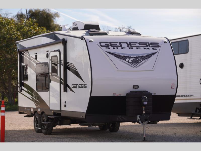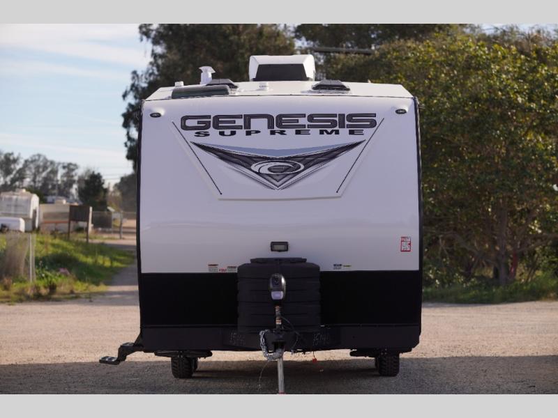 All sizes of off-road toys can fit into one of these Genesis Supreme fifth wheel toy haulers or travel trailer toy haulers! They are made for the outdoor enthusiasts and can handle harsh environments while still providing a luxurious lifestyle. With innovative floorplans built by engineers, you can know you will find what you're looking for in a toy hauler. Start your off-road journey today with your favorite model!