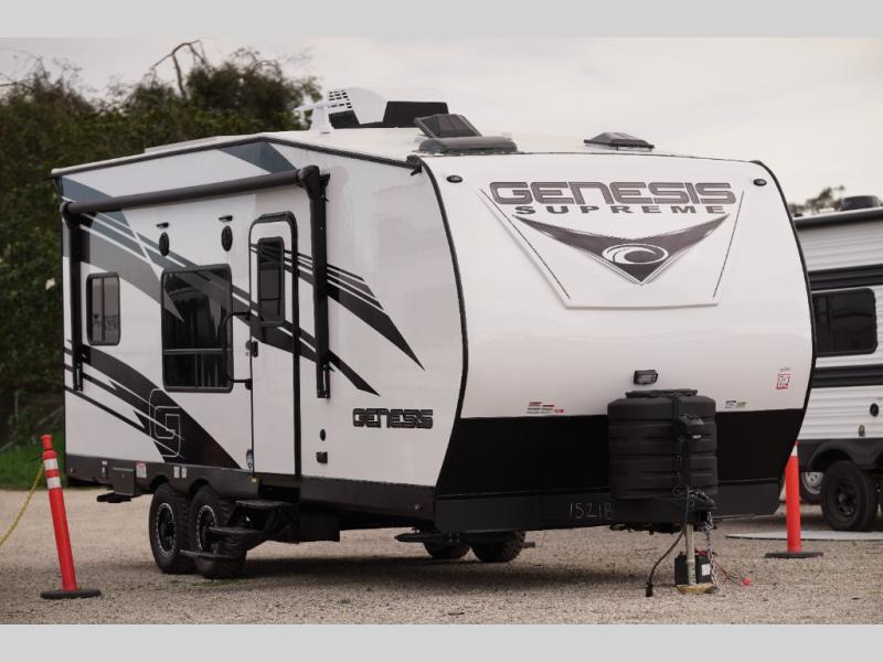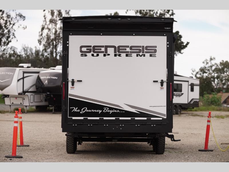 All sizes of off-road toys can fit into one of these Genesis Supreme fifth wheel toy haulers or travel trailer toy haulers! They are made for the outdoor enthusiasts and can handle harsh environments while still providing a luxurious lifestyle. With innovative floorplans built by engineers, you can know you will find what you're looking for in a toy hauler. Start your off-road journey today with your favorite model!