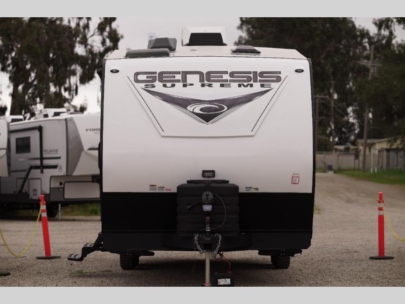All sizes of off-road toys can fit into one of these Genesis Supreme fifth wheel toy haulers or travel trailer toy haulers! They are made for the outdoor enthusiasts and can handle harsh environments while still providing a luxurious lifestyle. With innovative floorplans built by engineers, you can know you will find what you're looking for in a toy hauler. Start your off-road journey today with your favorite model!