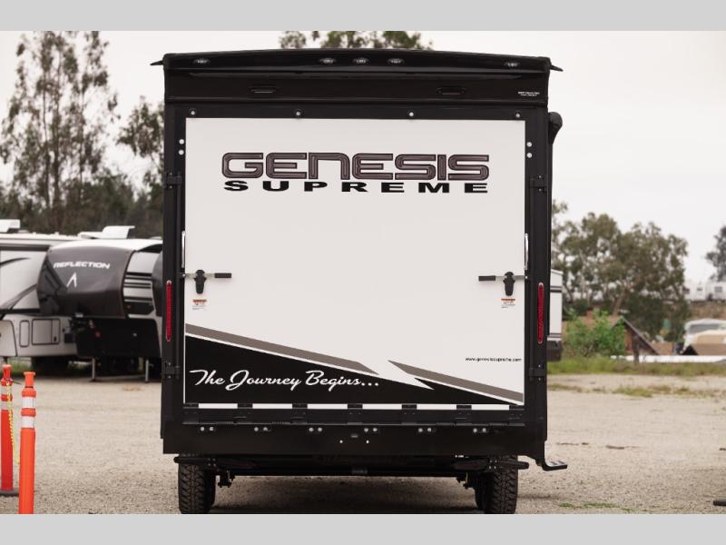 All sizes of off-road toys can fit into one of these Genesis Supreme fifth wheel toy haulers or travel trailer toy haulers! They are made for the outdoor enthusiasts and can handle harsh environments while still providing a luxurious lifestyle. With innovative floorplans built by engineers, you can know you will find what you're looking for in a toy hauler. Start your off-road journey today with your favorite model!